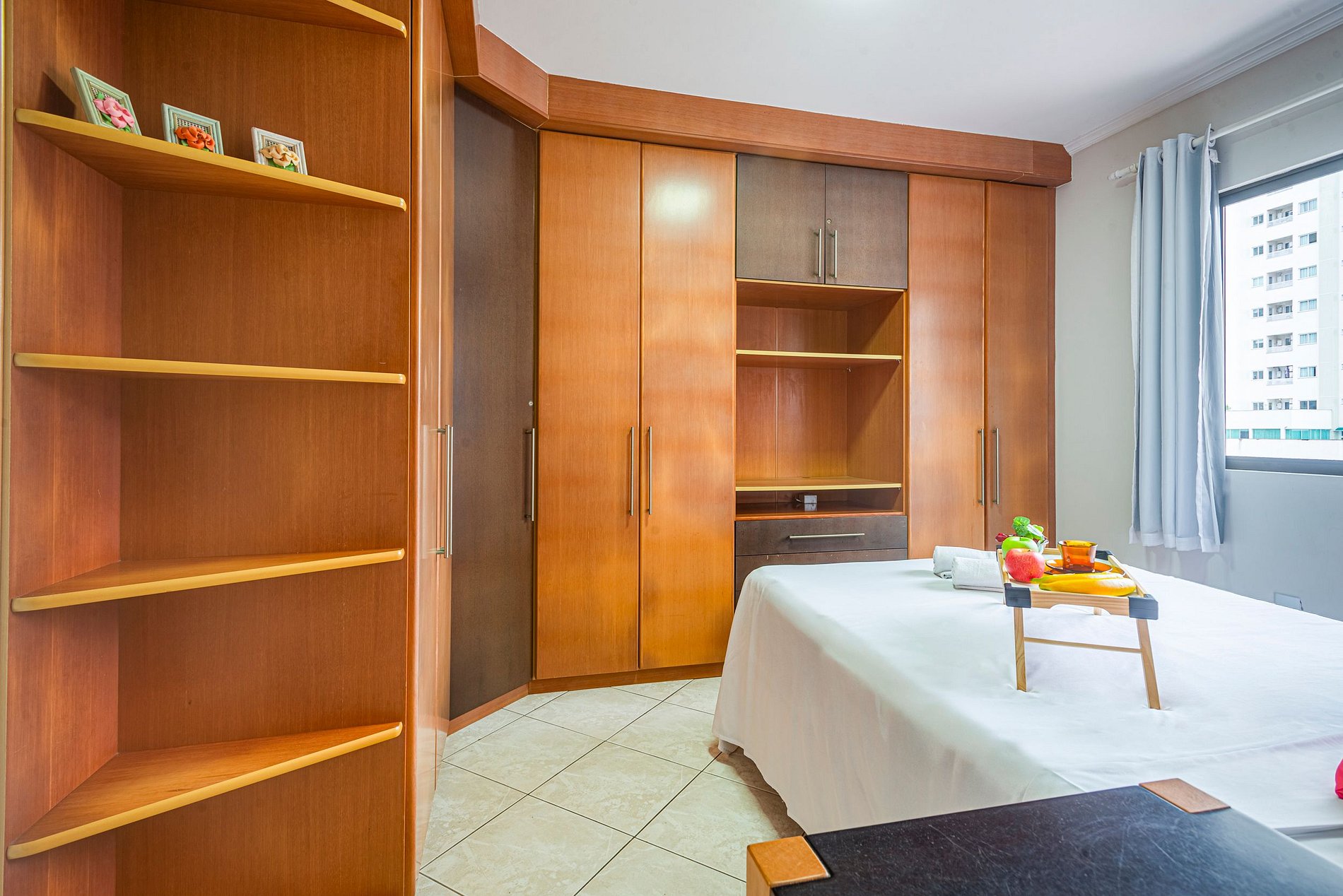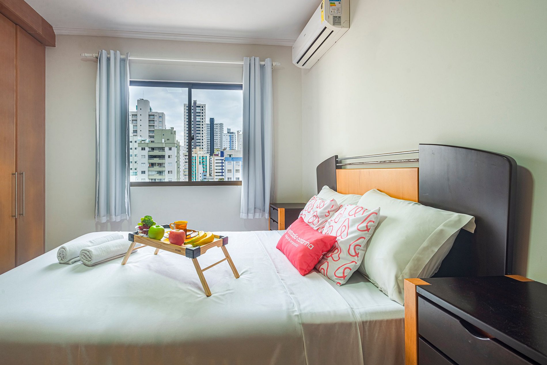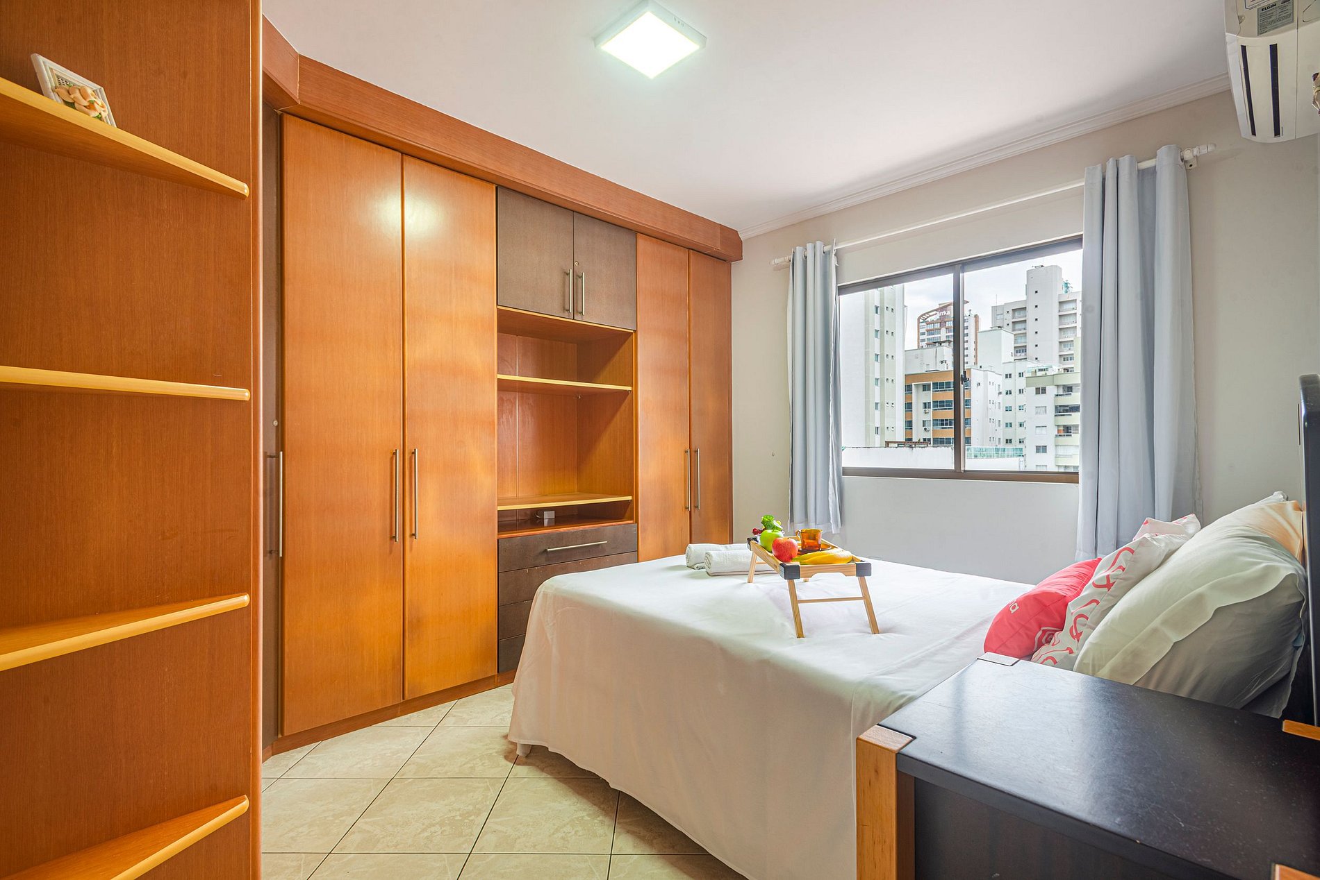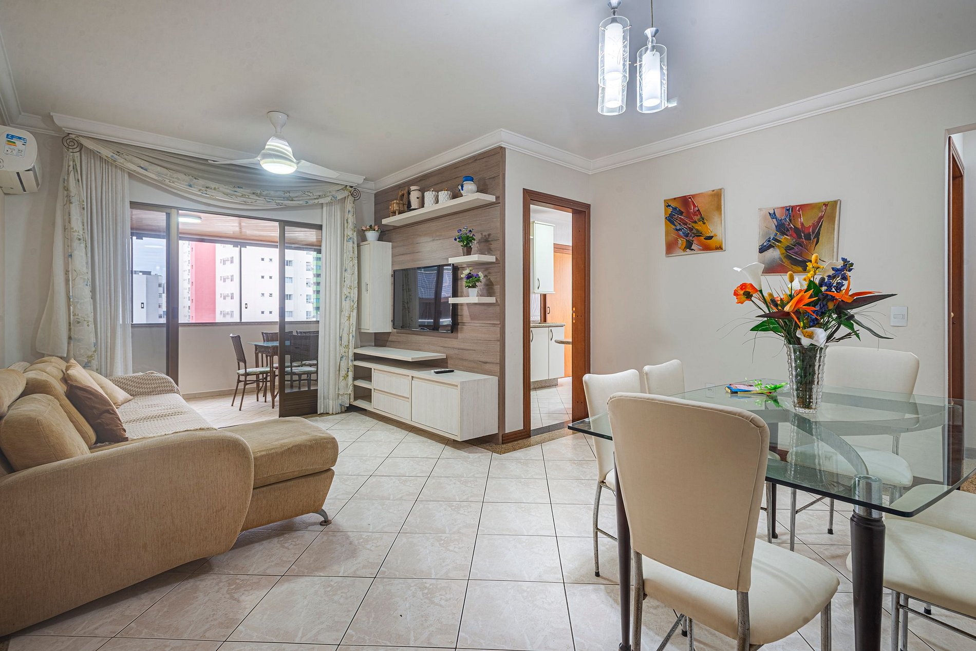 O apartamento oferece ar-condicionado nos três quartos e também na sala de estar, garantindo conforto nos dias quentes.