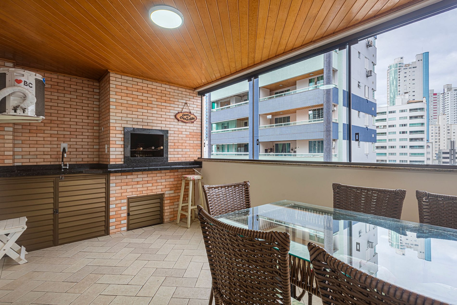 > Sacada ampla com churrasqueira a carvão