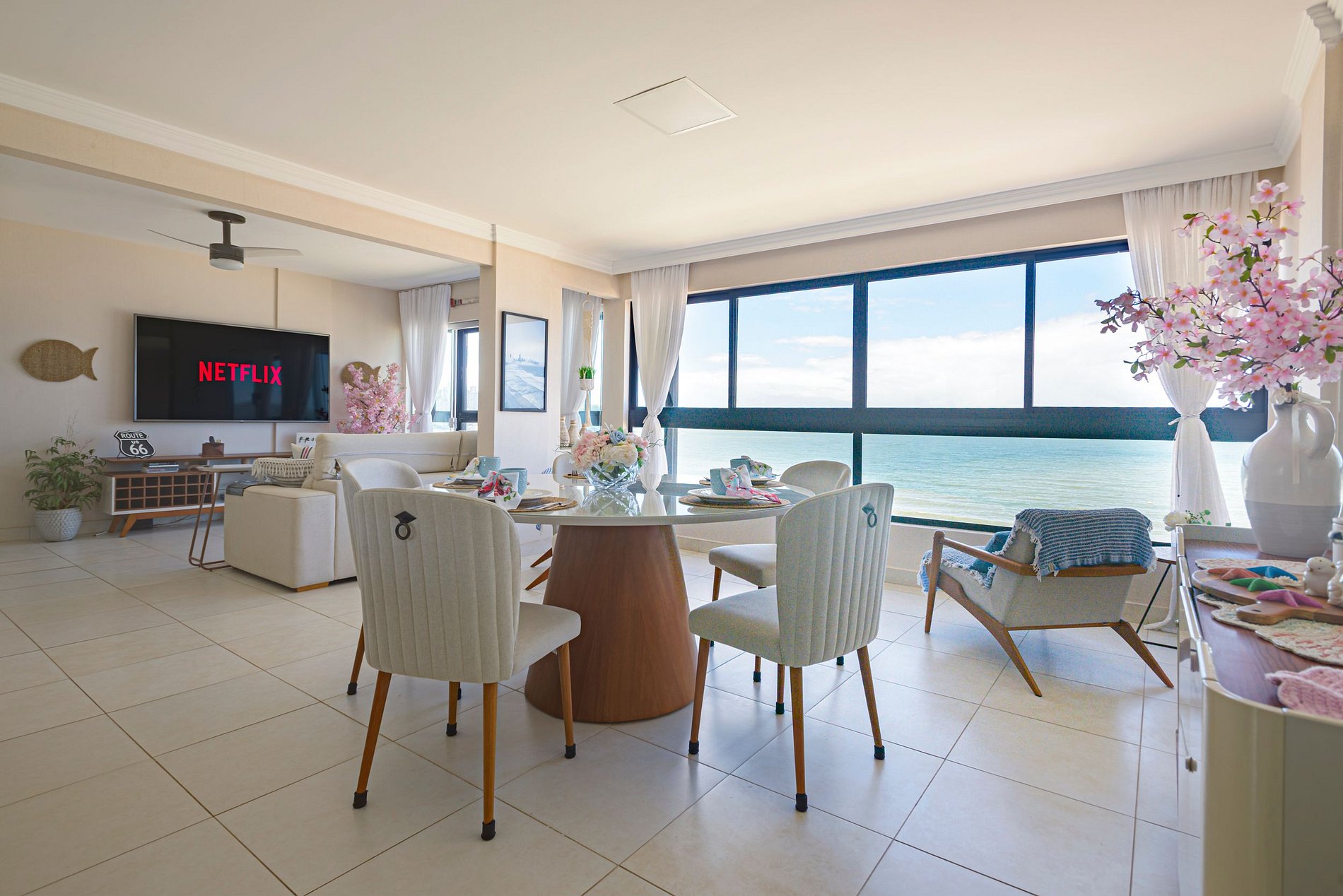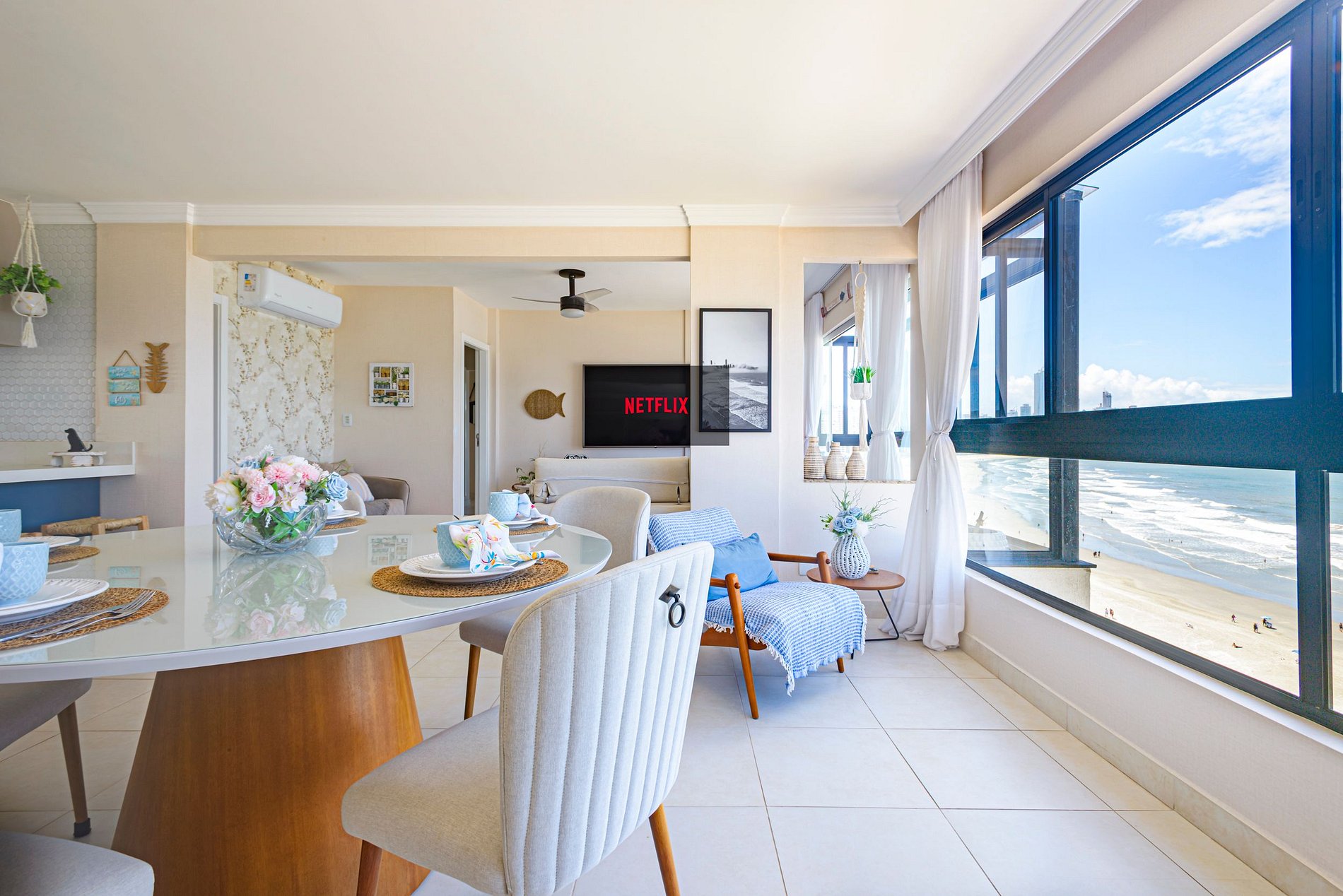 Com vista incrível para o mar do alto do 11º andar, este espaço foi cuidadosamente decorado e mobiliado para oferecer o máximo de conforto, praticidade e elegância.