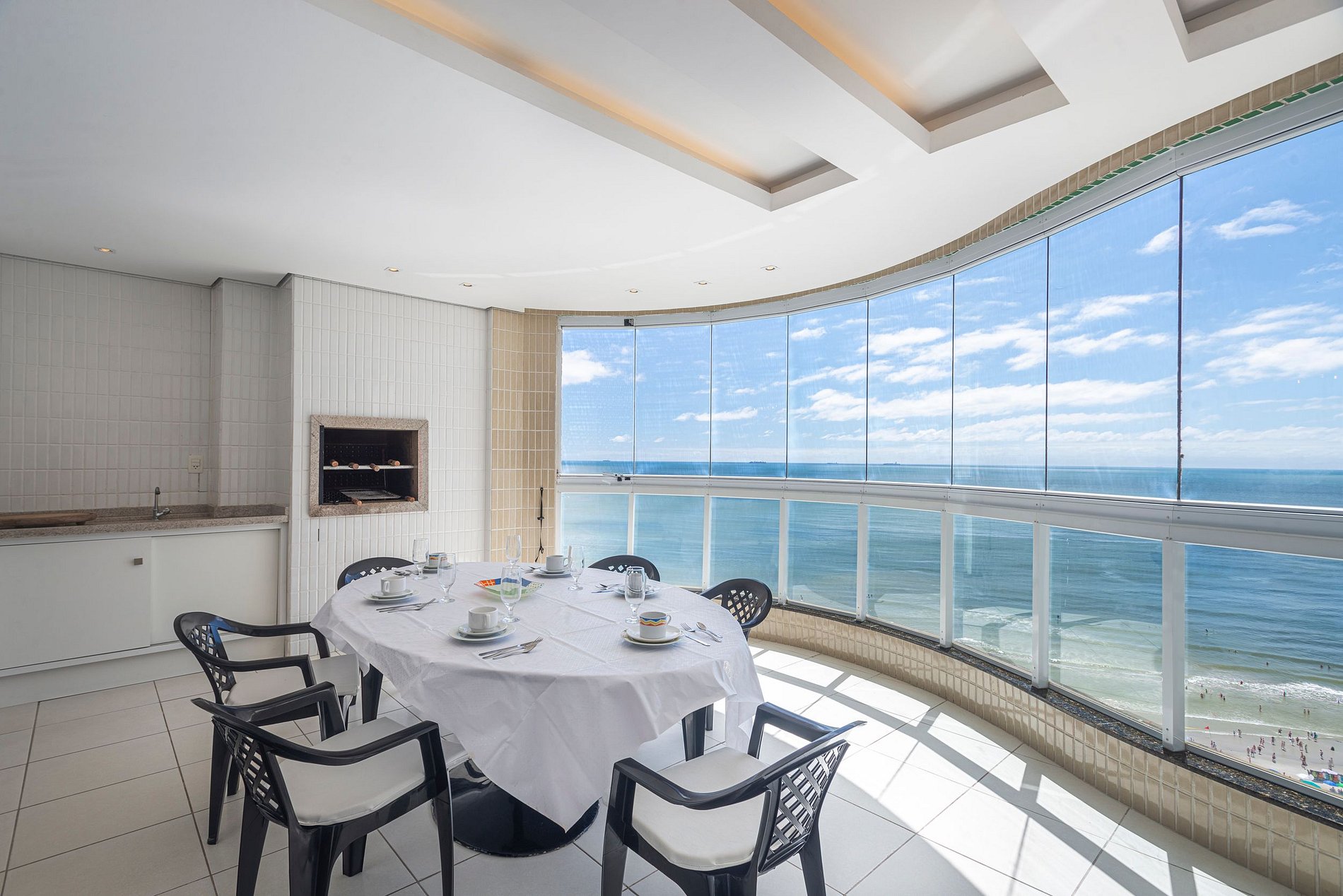 Beira mar! O condomínio fica em frente à praia central de Balneário Camboriú.