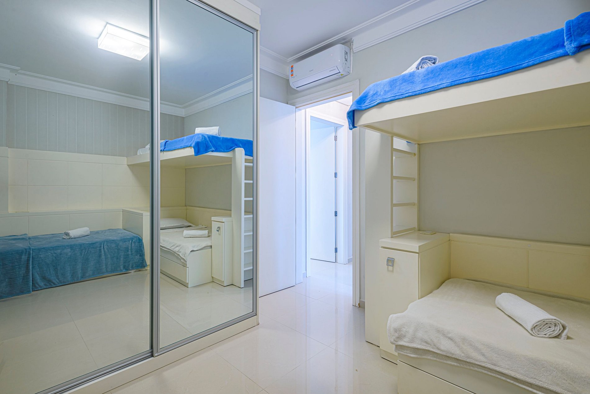 A acomodação conta com ar condicionado nos dois quartos e também na sala de estar.