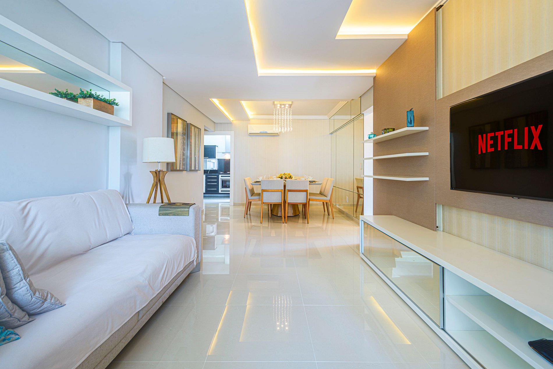 - 2 quartos (sendo 1 suíte), ambos com ar-condicionado- Sala de estar moderna, aconchegante e climatizada - 2 vagas de garagem privativas - Varanda fechada com churrasqueira a gás- Cozinha completa- Internet Wi-Fi de alta velocidade