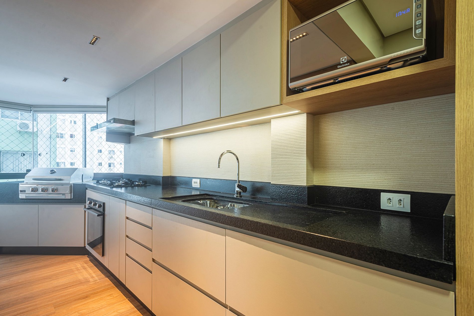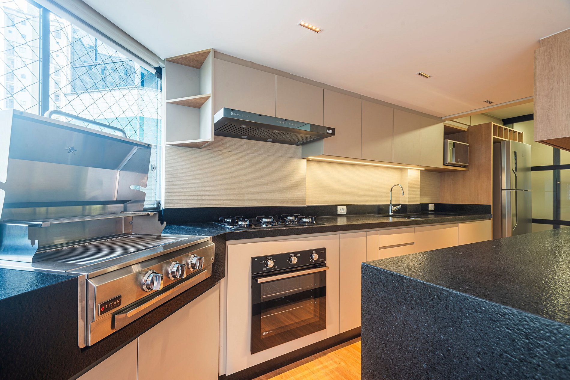 - Cozinha ampla e privativa com churrasqueira estilo americana a gás.