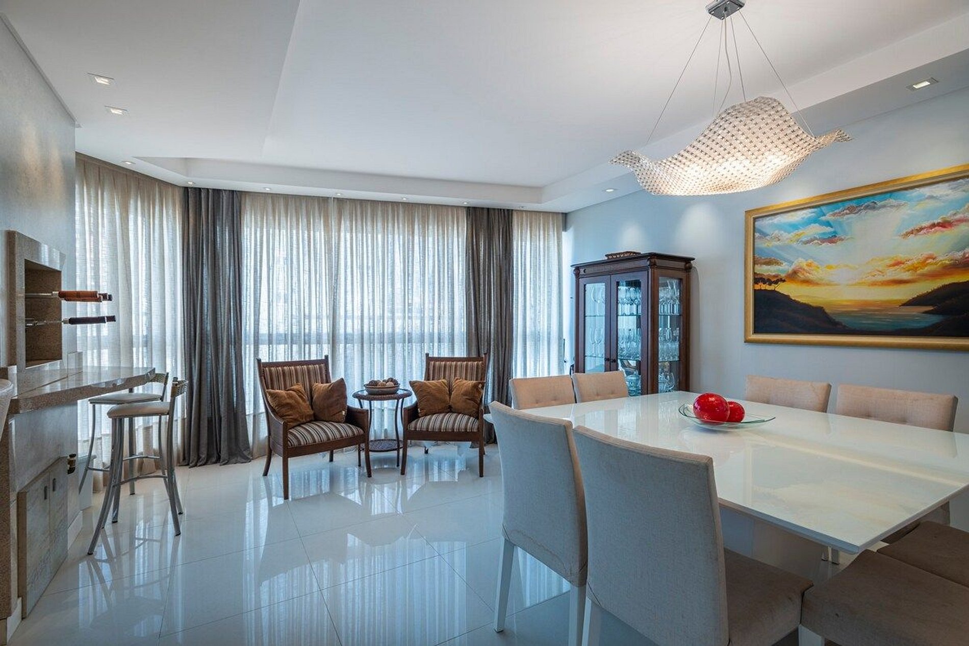 [CONDIMÍNIO FAMILIAR - APARTAMENTO DESTINADO EXCLUSIVAMENTE A FAMÍLIAS] Apartamento amplo, bem iluminado e ventilado. Com uma atmosfera moderna e clean. > TRÊS SUÍTES com ar condicionado, TV a cabo e cama QUEEN. > Roupas de CAMA E BANHO a disposição. > Varanda integrada com CHURRASQUEIRA, ótima para passar bons momentos em FAMÍLIA. > DUAS VAGAS de garagem privativas. Para quem busca o espaço e conforto de um apartamento alto padrão, em uma localização central que permite fazer tudo a pé.
