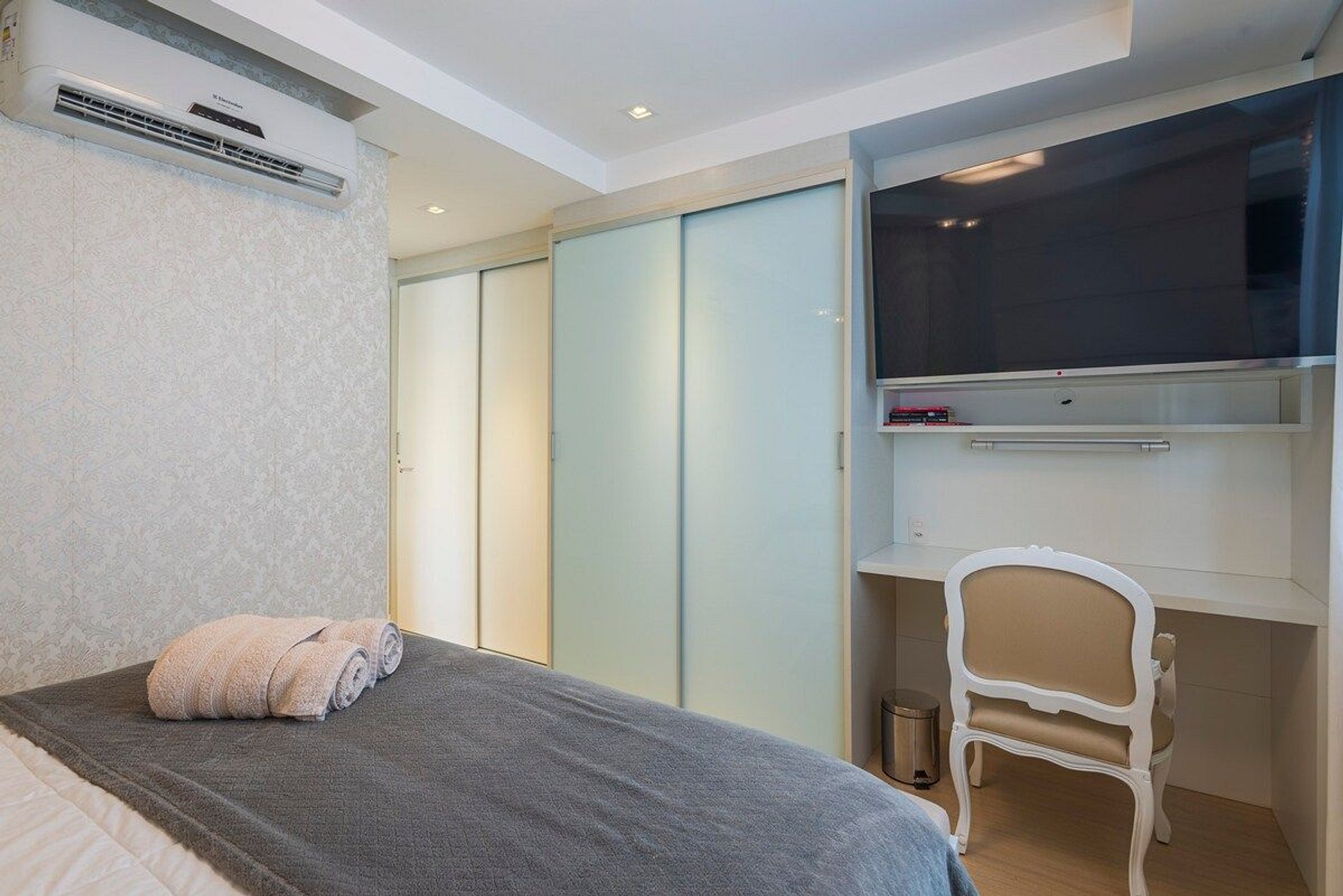 A acomodação conta com ar condicionado nas três suítes e também na sala de estar.
