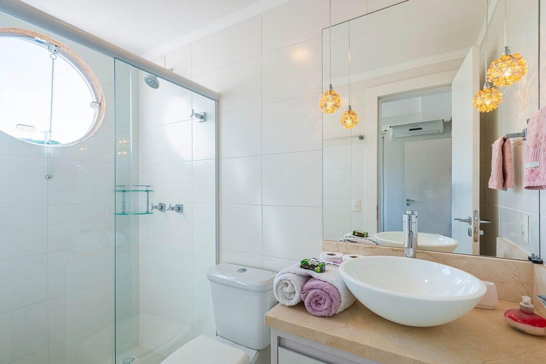 A acomodação conta com ar condicionado nas três suítes.