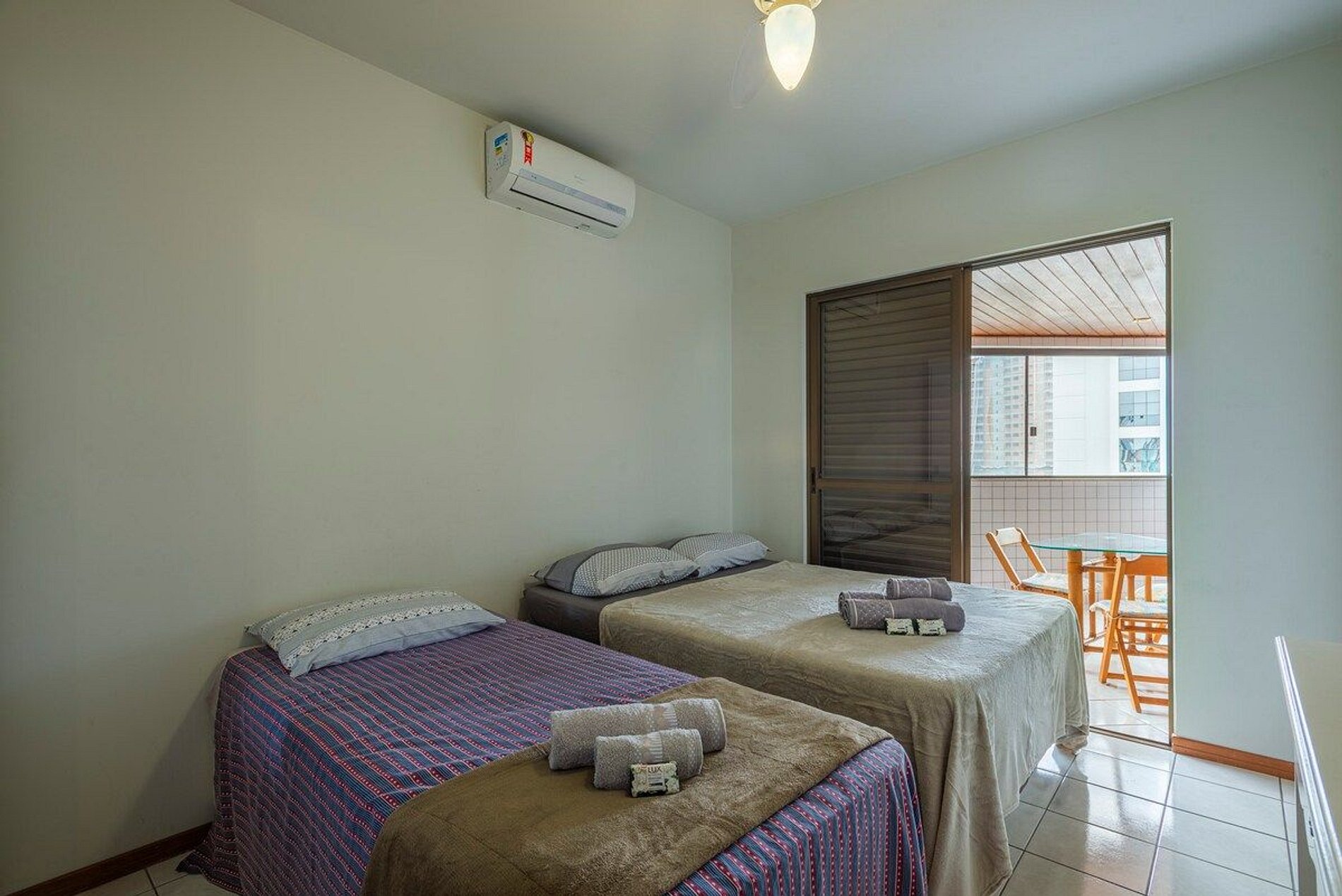 Apartamento completinho, muito bem decorado e equipado. Dois quartos (sendo uma suíte), ambos com ar condicionado. Dois banheiros, Sacada espaçosa com churrasqueira. Quadra mar! O apartamento fica a 1 minuto caminhando até a praia. Também está próximo de supermercados, bares, restaurantes, shopping e da praia. Pode fazer tuuudo a pé! - Internet Wi-Fi e SmarTV com TV a cabo; - Lençóis, toalhas, cobertores, travesseiros, fronhas e sabonetes individuais à disposição dos hóspedes;