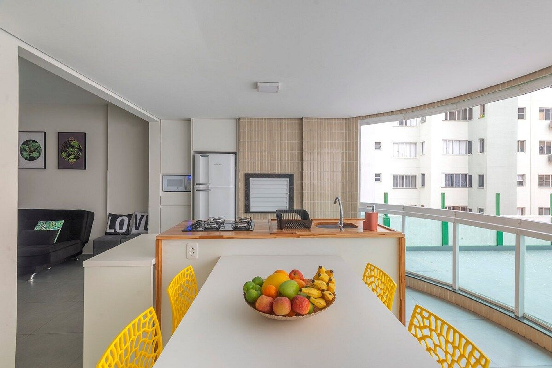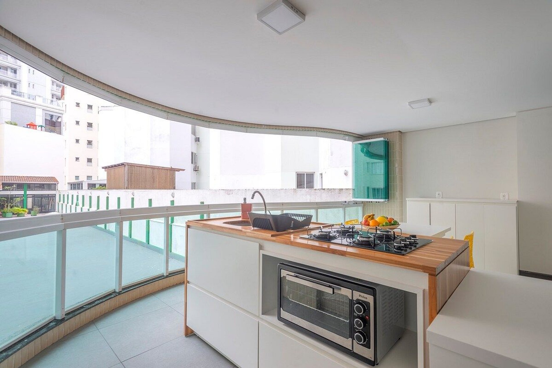 Beira mar! O condomínio fica em frente à praia central de Balneário Camboriú.