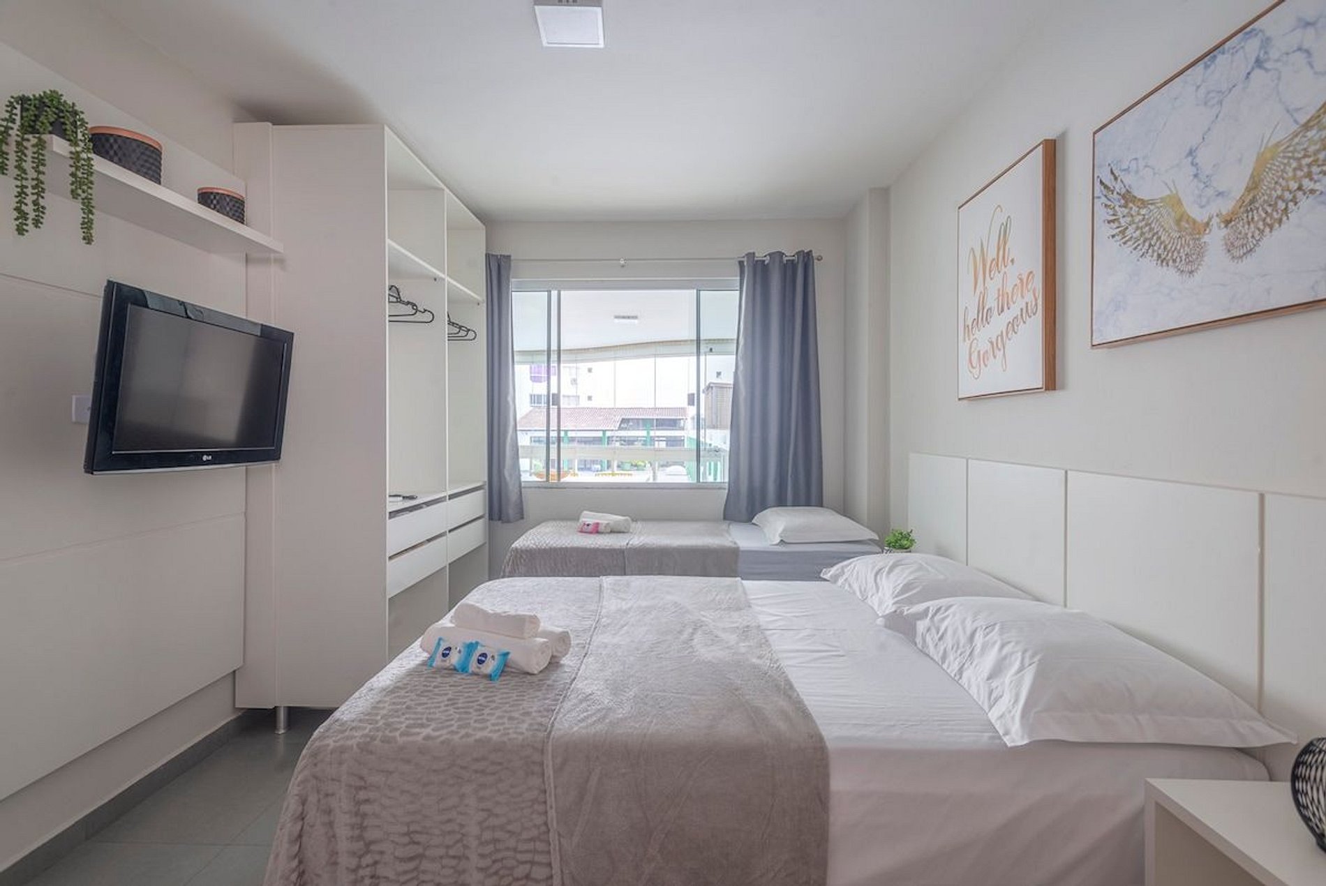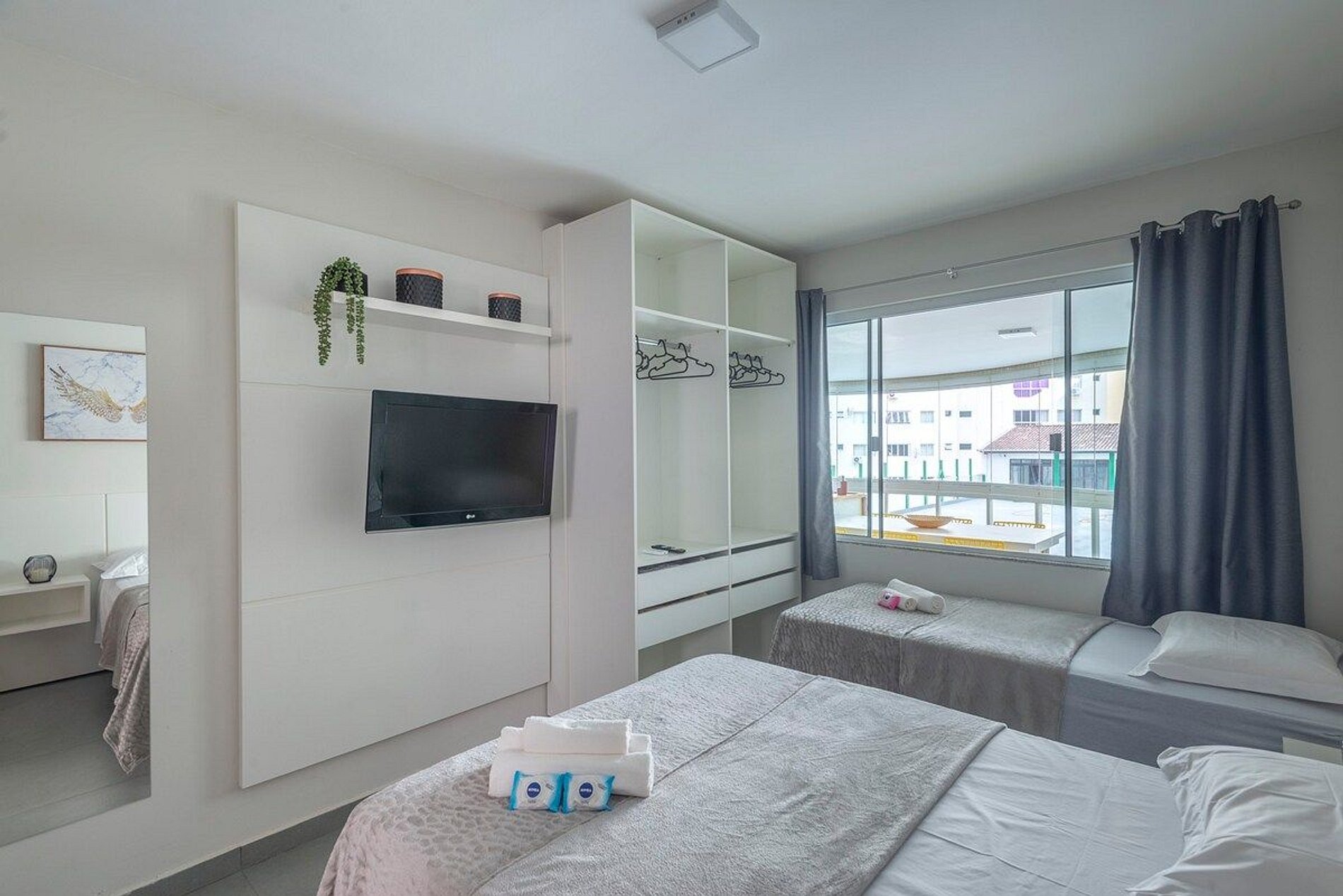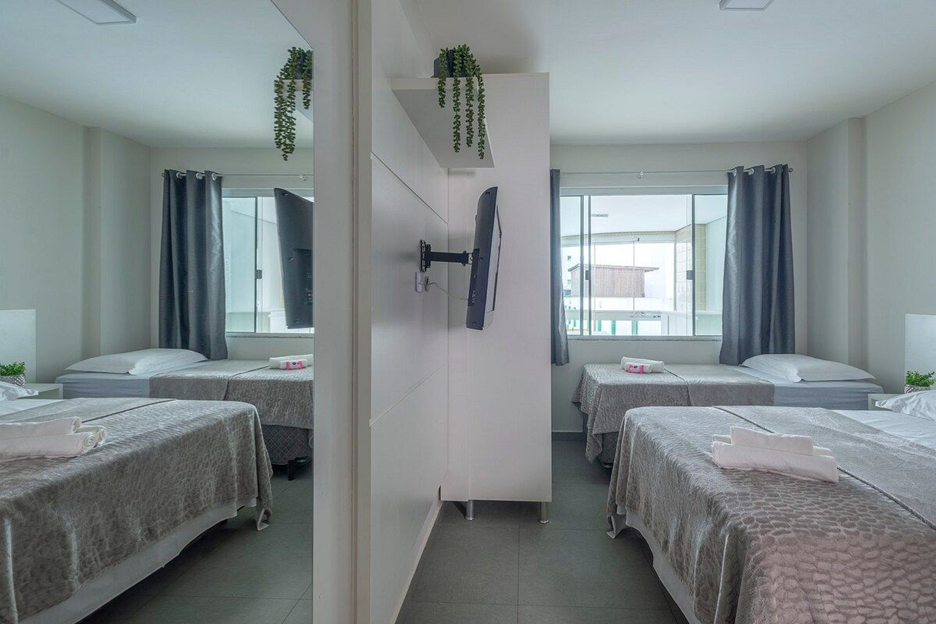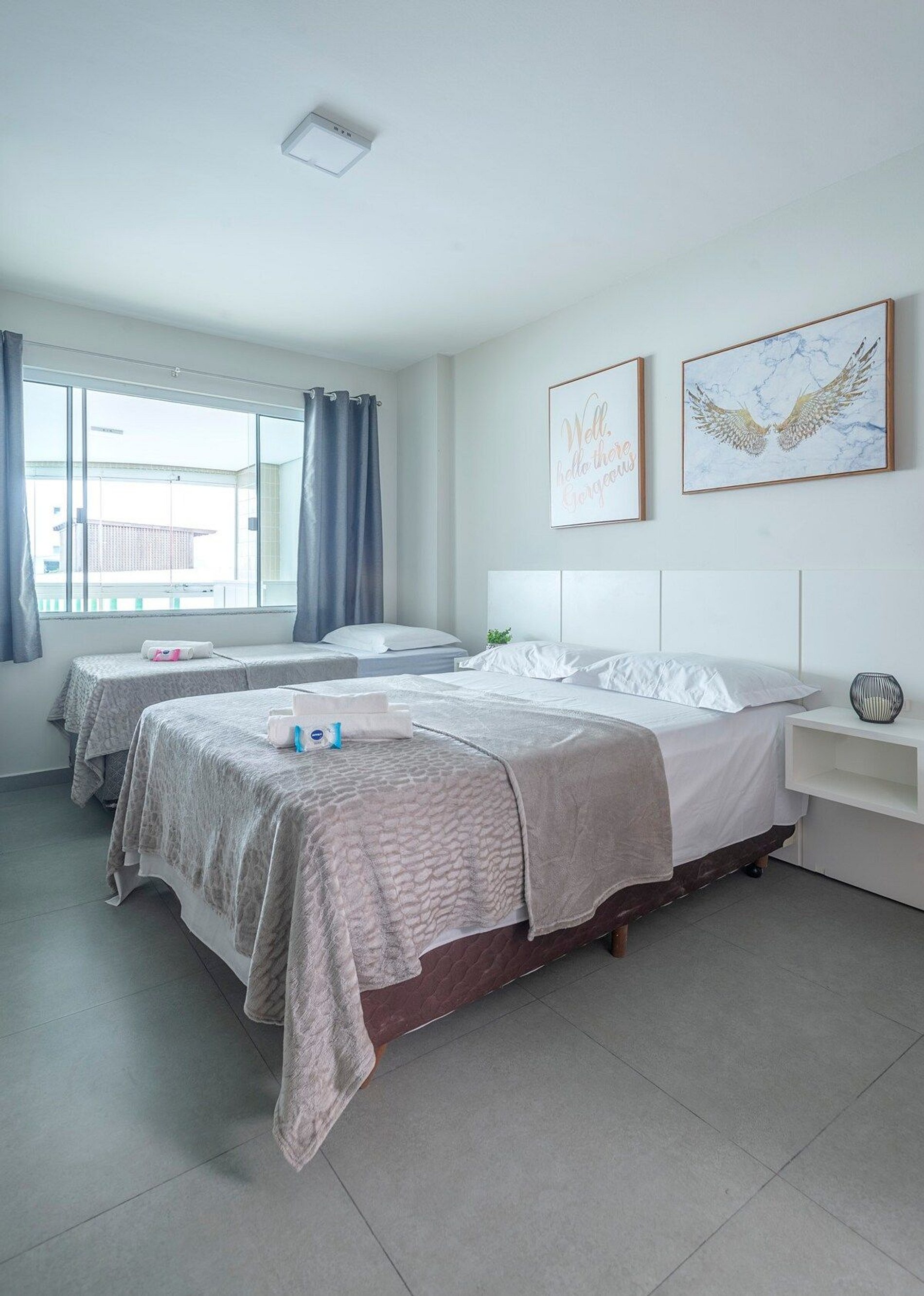 Apartamento amplo em condomínio de frente para a praia. Localização privilegiada na Avenida Atlântica, a principal avenida da cidade. > Duas suítes + dois dormitórios, todos eles com ar condicionado. > Roupas de cama e banho a disposição dos hóspedes. > Sacada ampla com churrasqueira a carvão. > Apartamento no segundo andar. Para quem busca espaço, conforto e praticidade na melhor localização de Balneário Camboriú, podendo fazer tudo a pé!