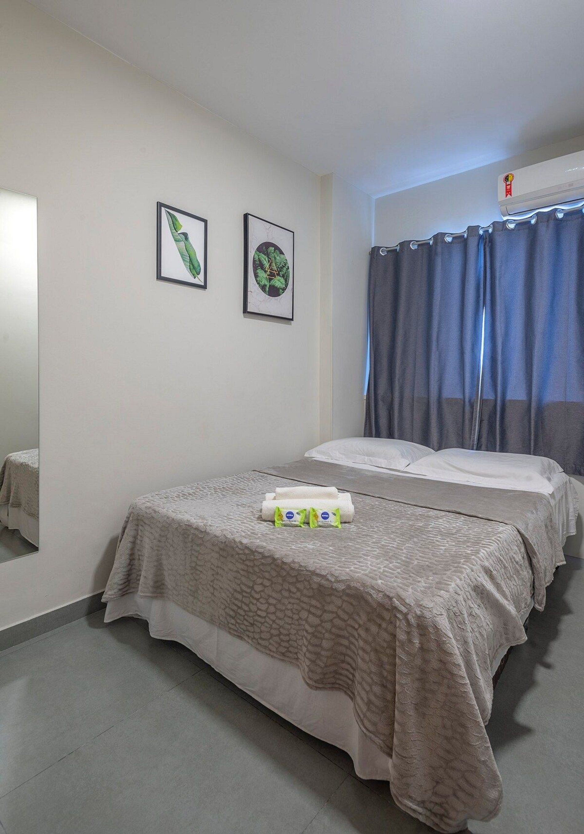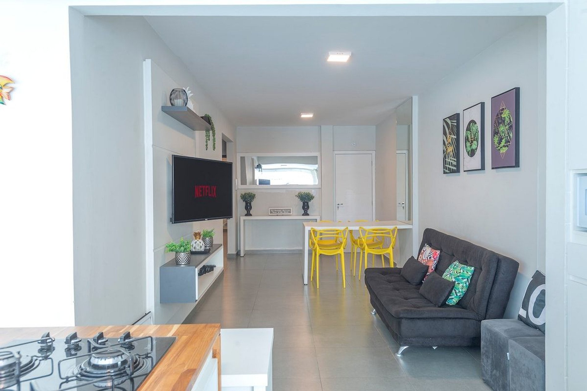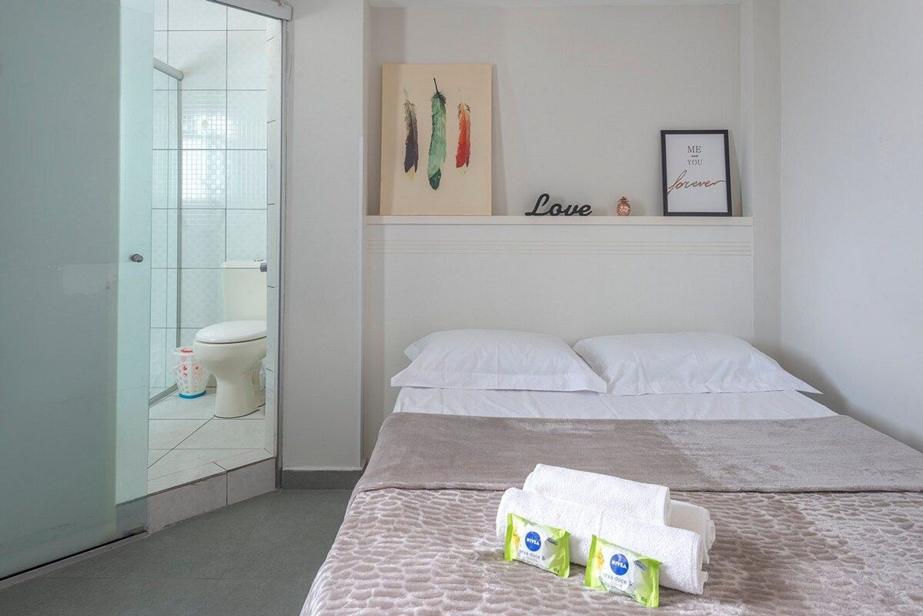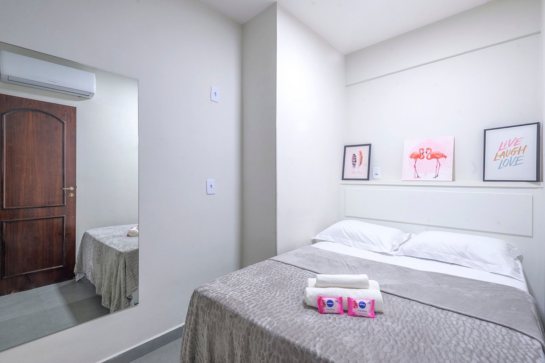 Somos pet friendly. Aceitamos UM pet por hospedagem, de PEQUENO PORTE, que seja educado, acostumado com o convívio em apartamentos e faça suas necessidades em local apropriado. Não é permitido subir nas camas e sofá. Qualquer dano ou eventualidade poderá ser cobrado do responsável pela reserva. Taxa: R$120.