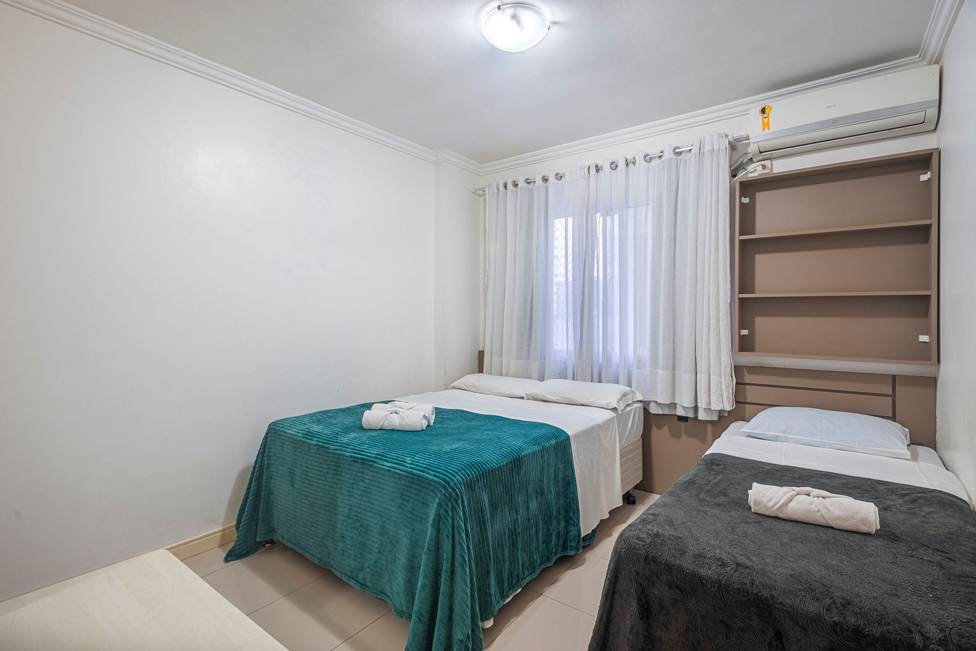 A acomodação conta com ar condicionado nos três quartos.