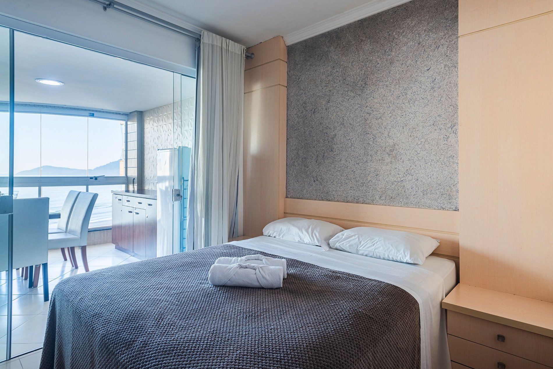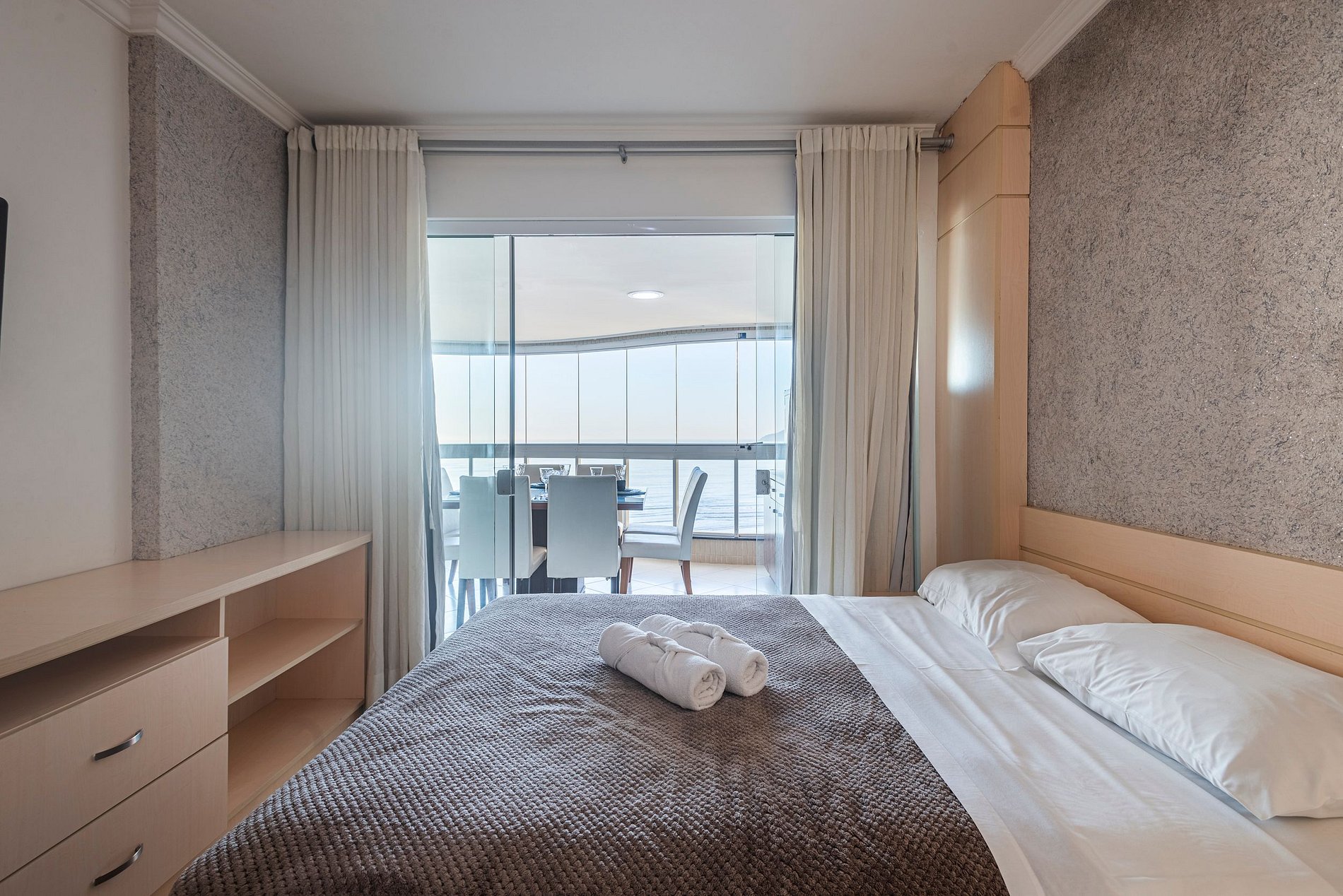 Beira mar! O condomínio fica em frente à praia central de Balneário Camboriú.