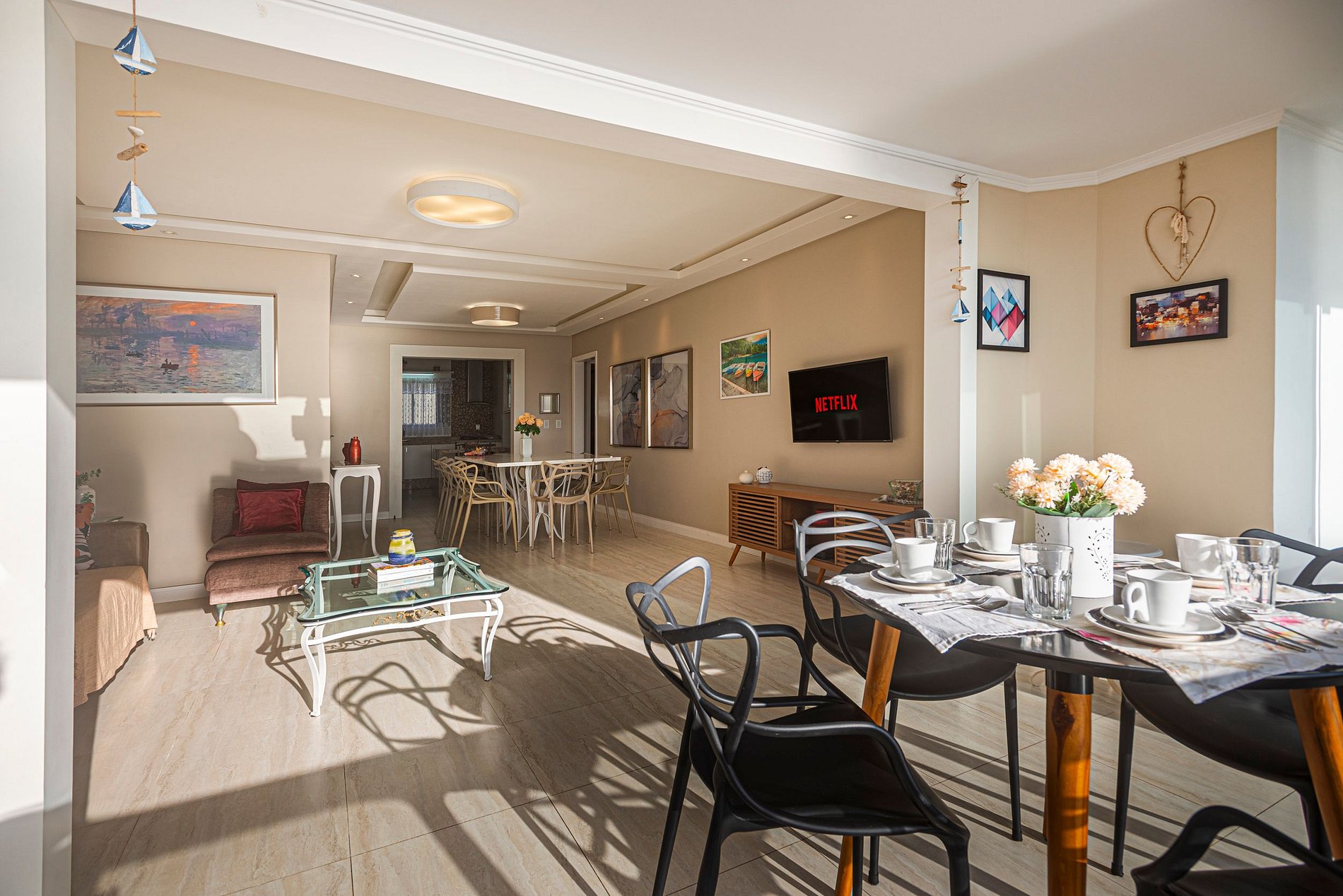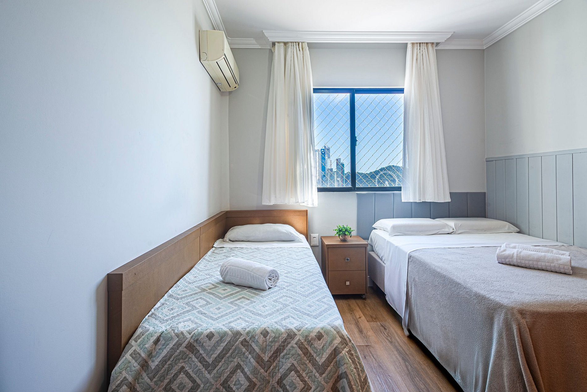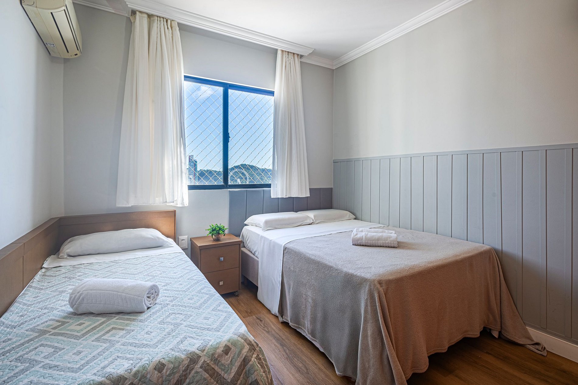 A acomodação conta com ar condicionado nos três quartos e também na sala de estar.