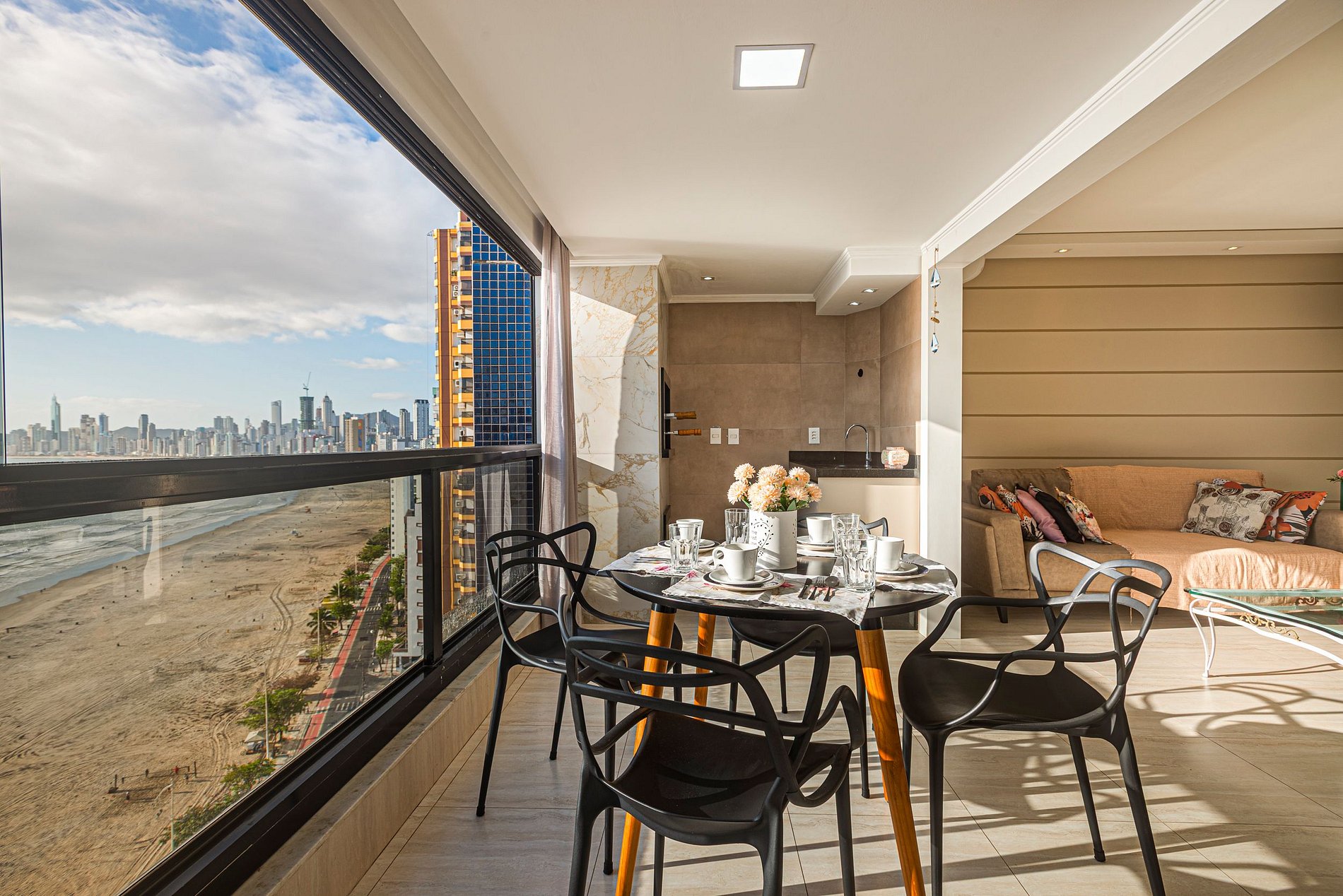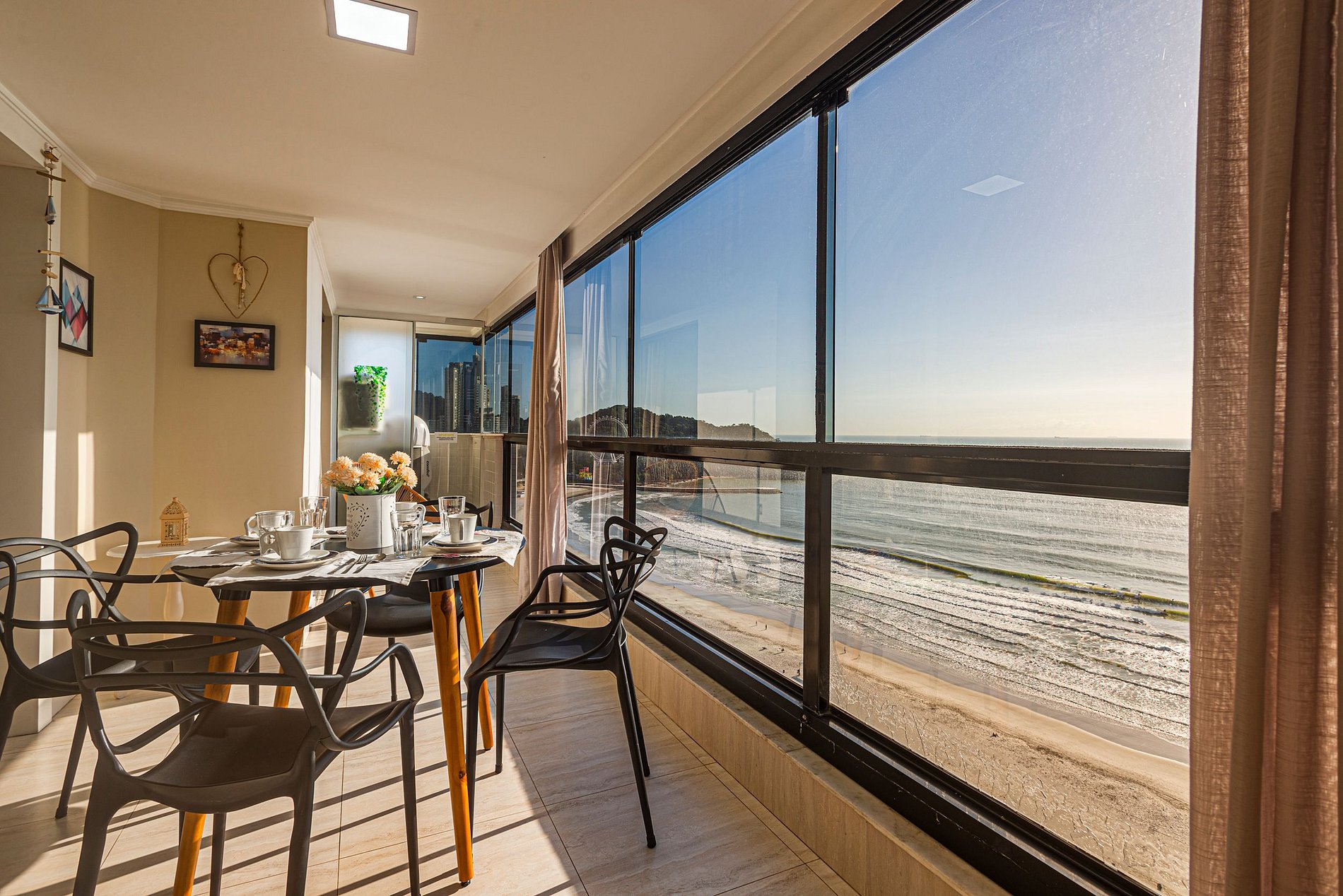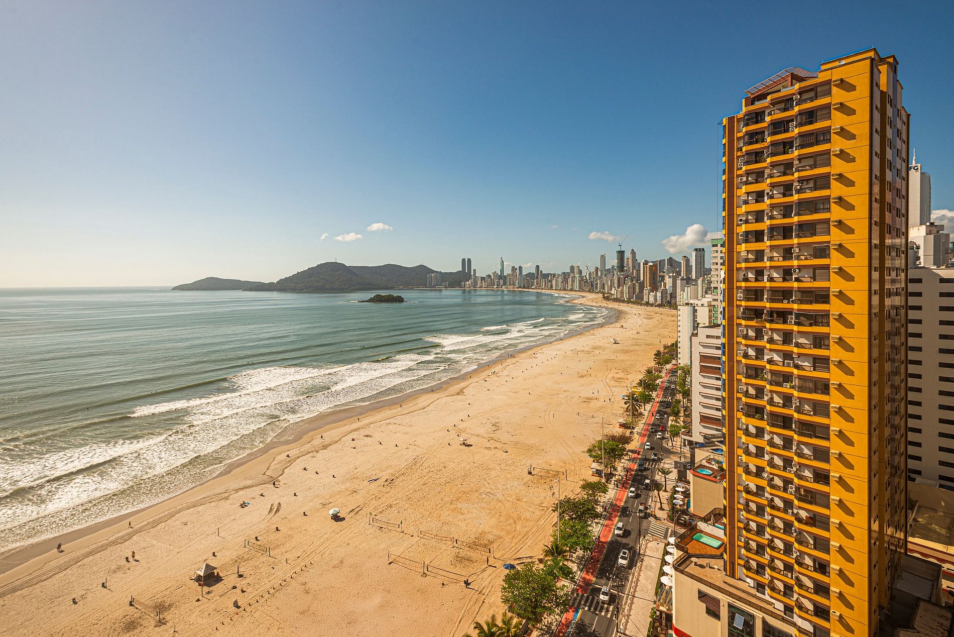 Beira mar! O condomínio fica em frente à praia central de Balneário Camboriú.