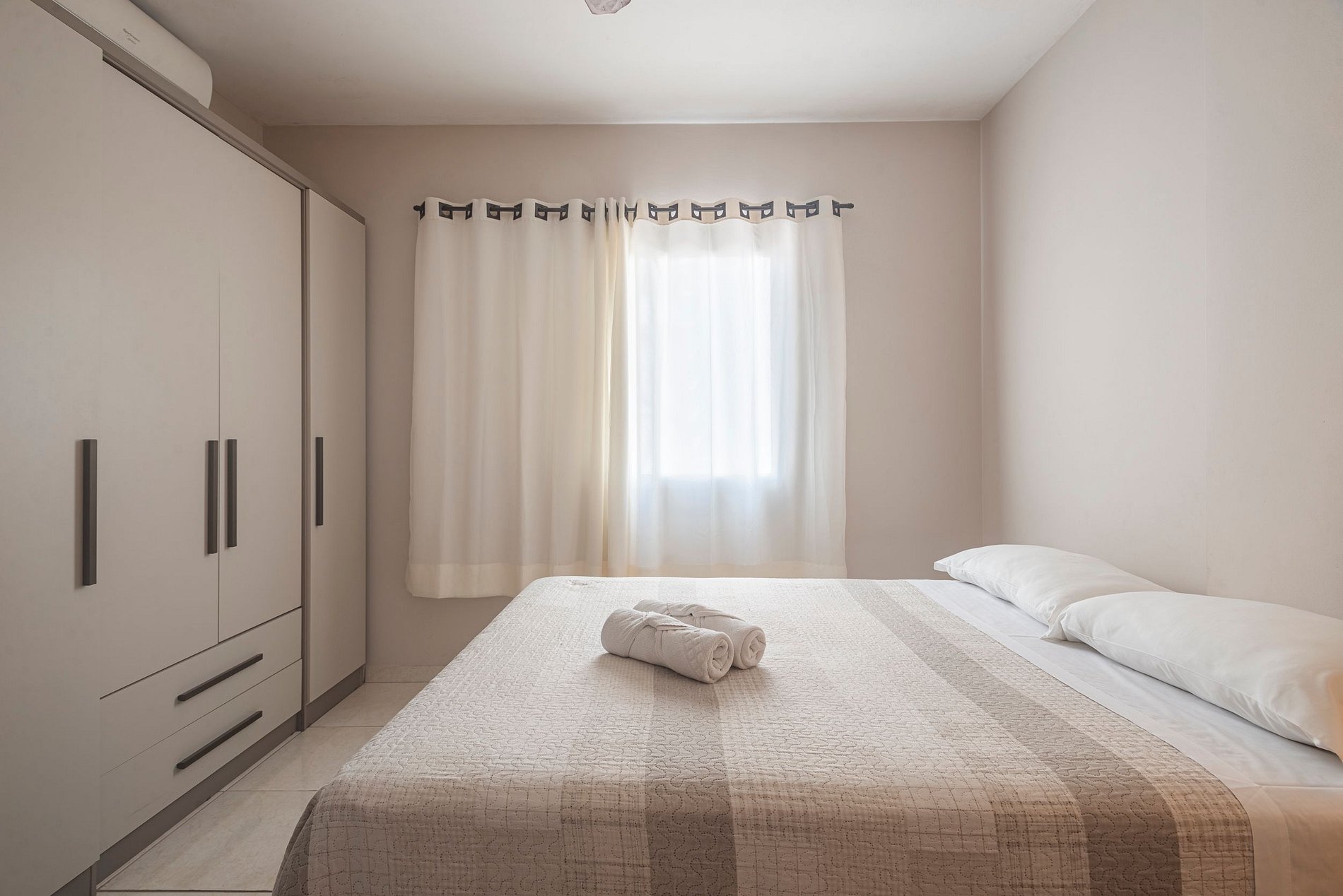 > 2 quartos com cama de casal e ar-condicionado.