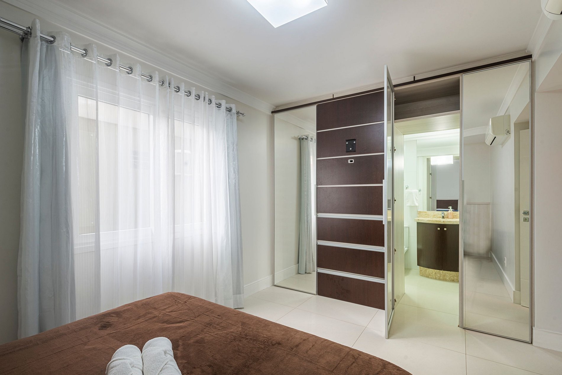 - Uma suíte mais dois dormitórios, todos eles com ar condicionado.