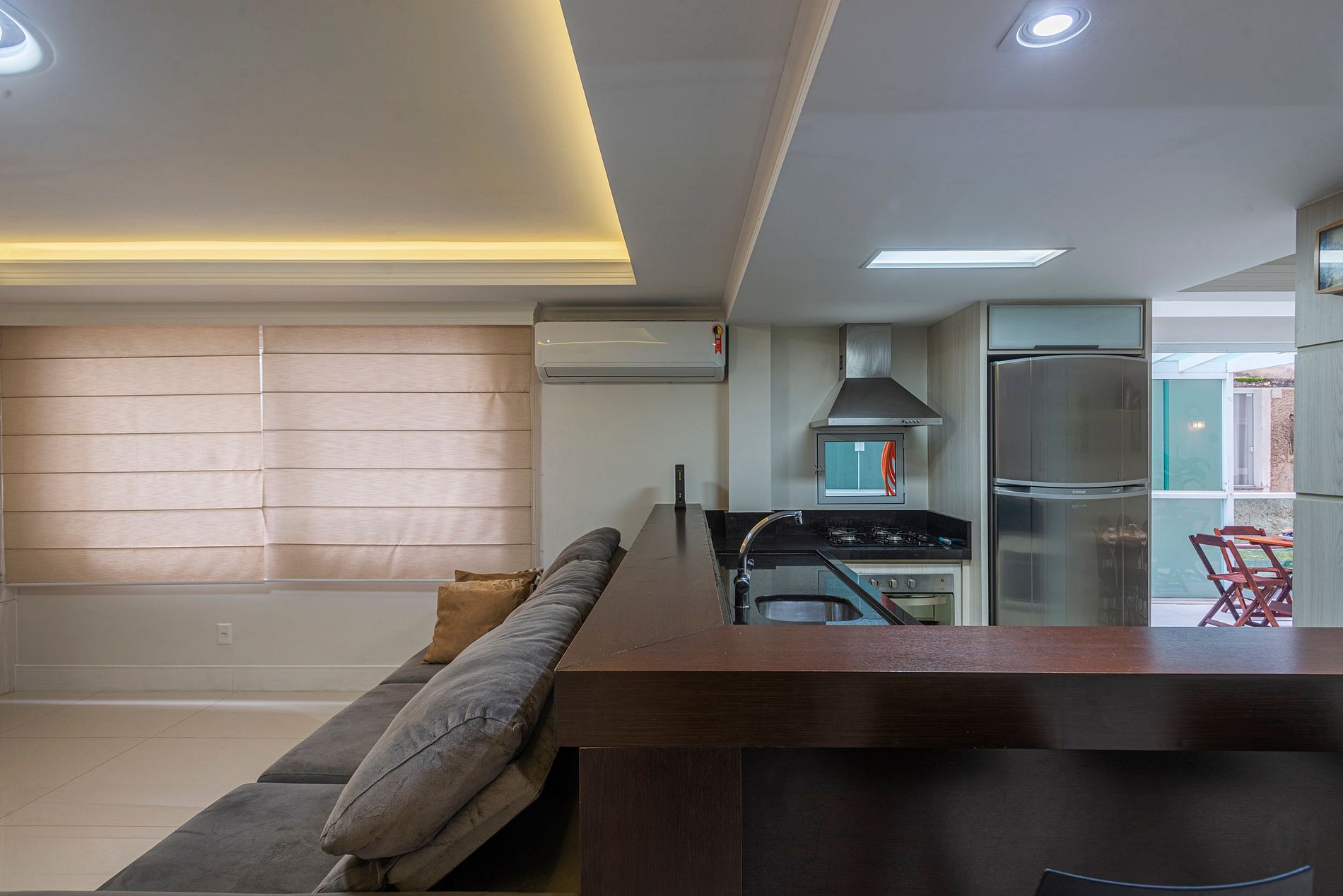 A acomodação conta com ar condicionado nos três quartos e também na sala de estar.