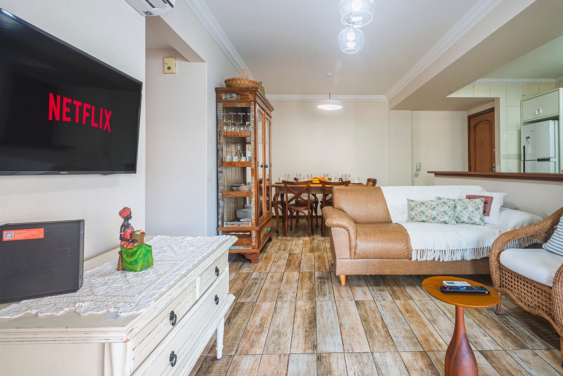 Ambiente climatizado: ar-condicionado nos três quartos e também na sala de estar.
