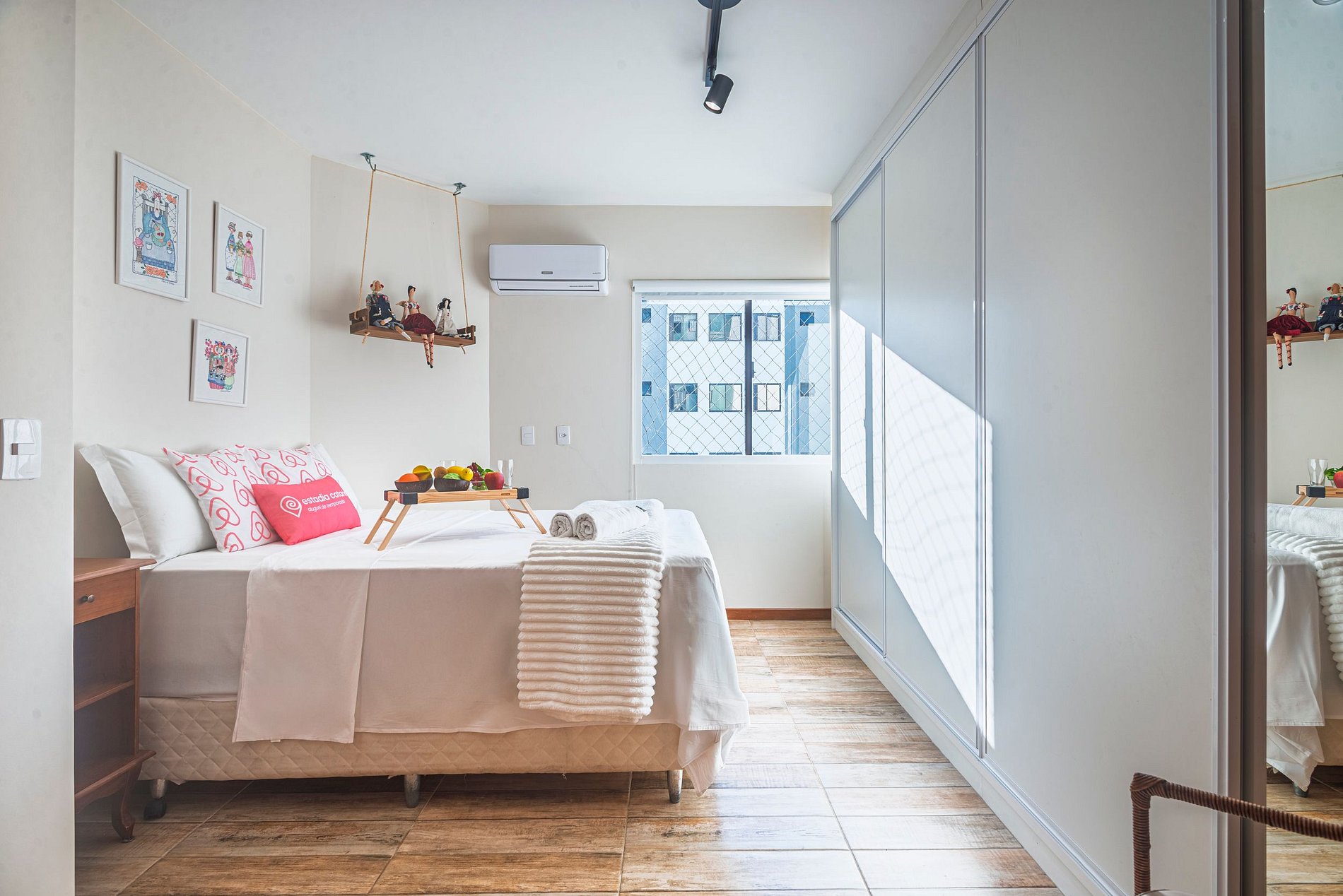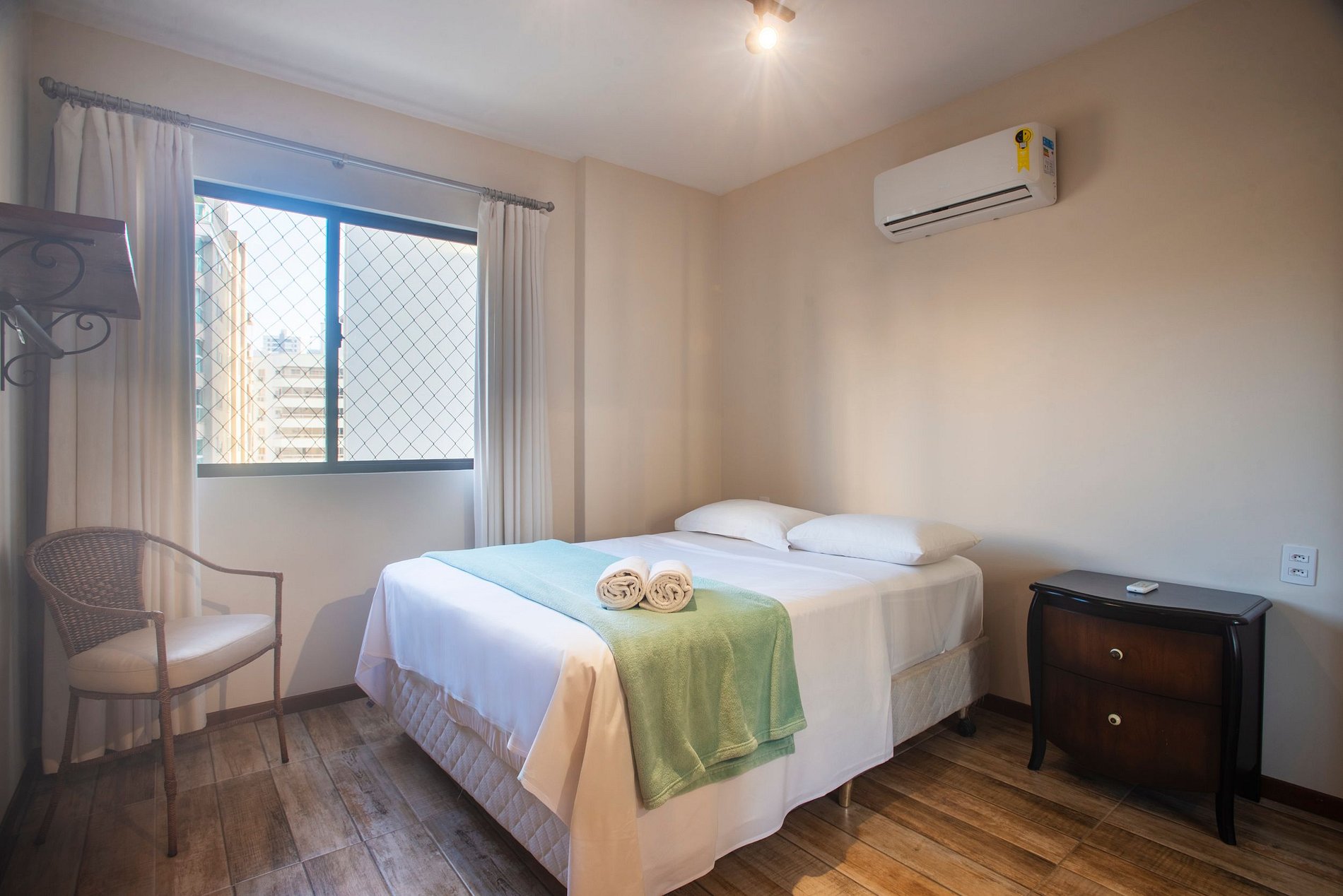 3 quartos (sendo 1 suíte), todos com ar-condicionado