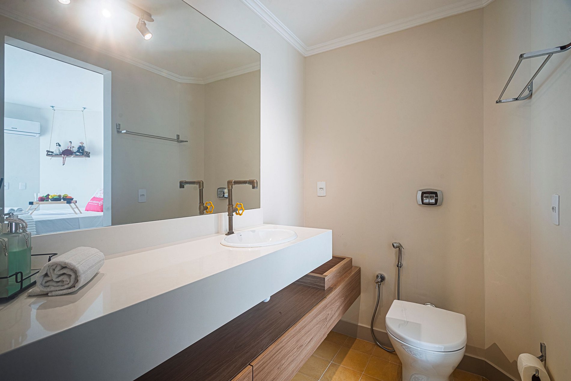 > O apartamento é entregue com 1 rolo de papel higiênico por banheiro para a chegada. Reposições durante a estadia ficam por conta dos hóspedes.