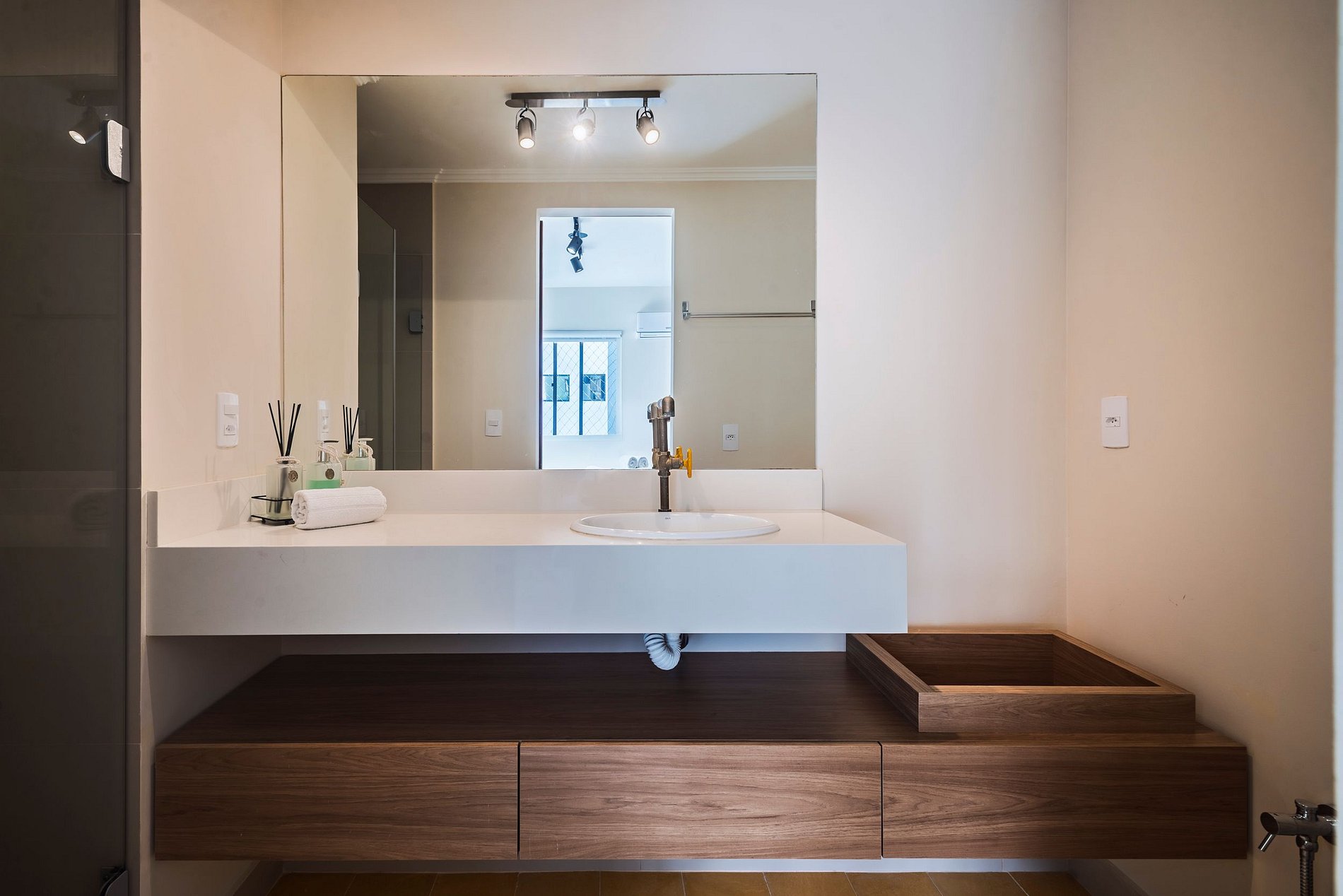 > O apartamento é entregue com 1 rolo de papel higiênico por banheiro para a chegada. Reposições durante a estadia ficam por conta dos hóspedes.