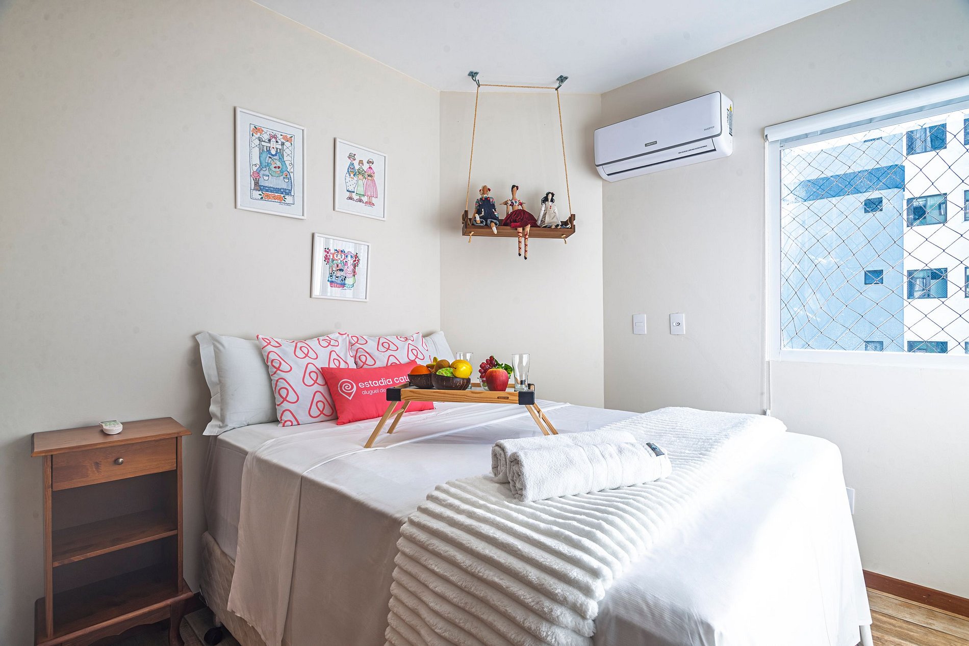 3 quartos (sendo 1 suíte), todos com ar-condicionado