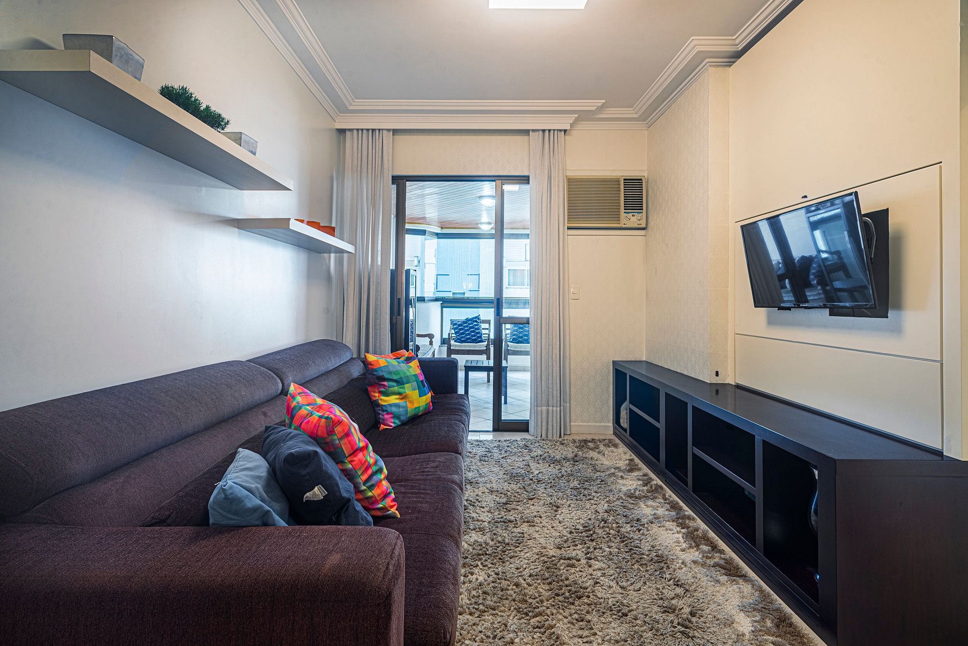 A acomodação conta com ar condicionado nos três quartos e também na sala de estar.