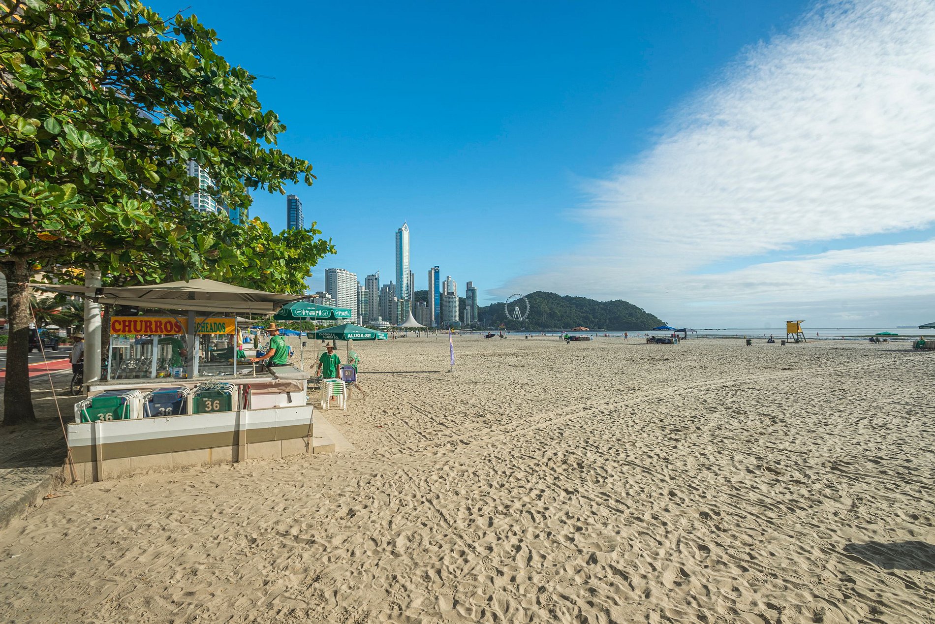 Beira mar! O condomínio fica em frente à praia central de Balneário Camboriú.