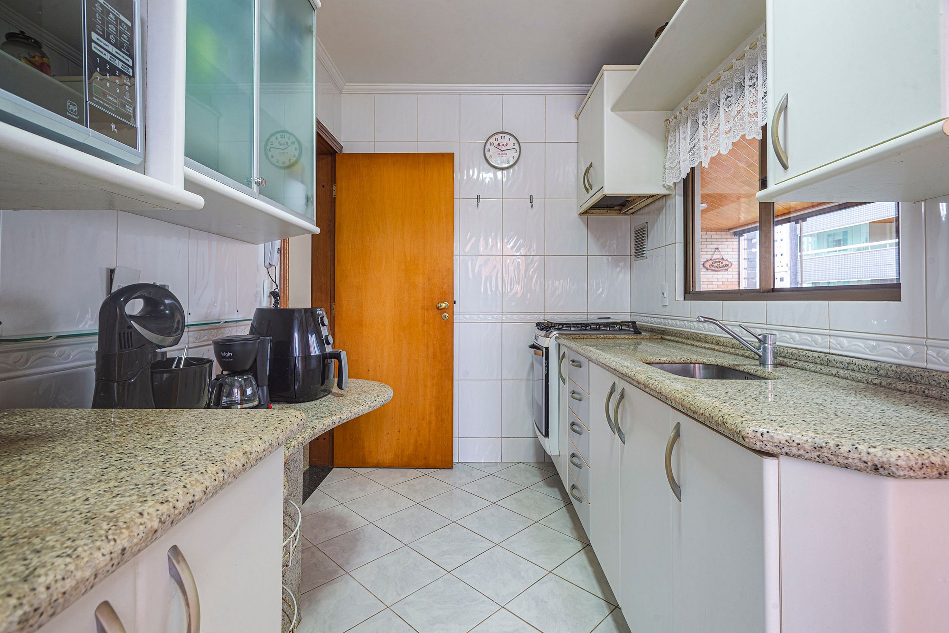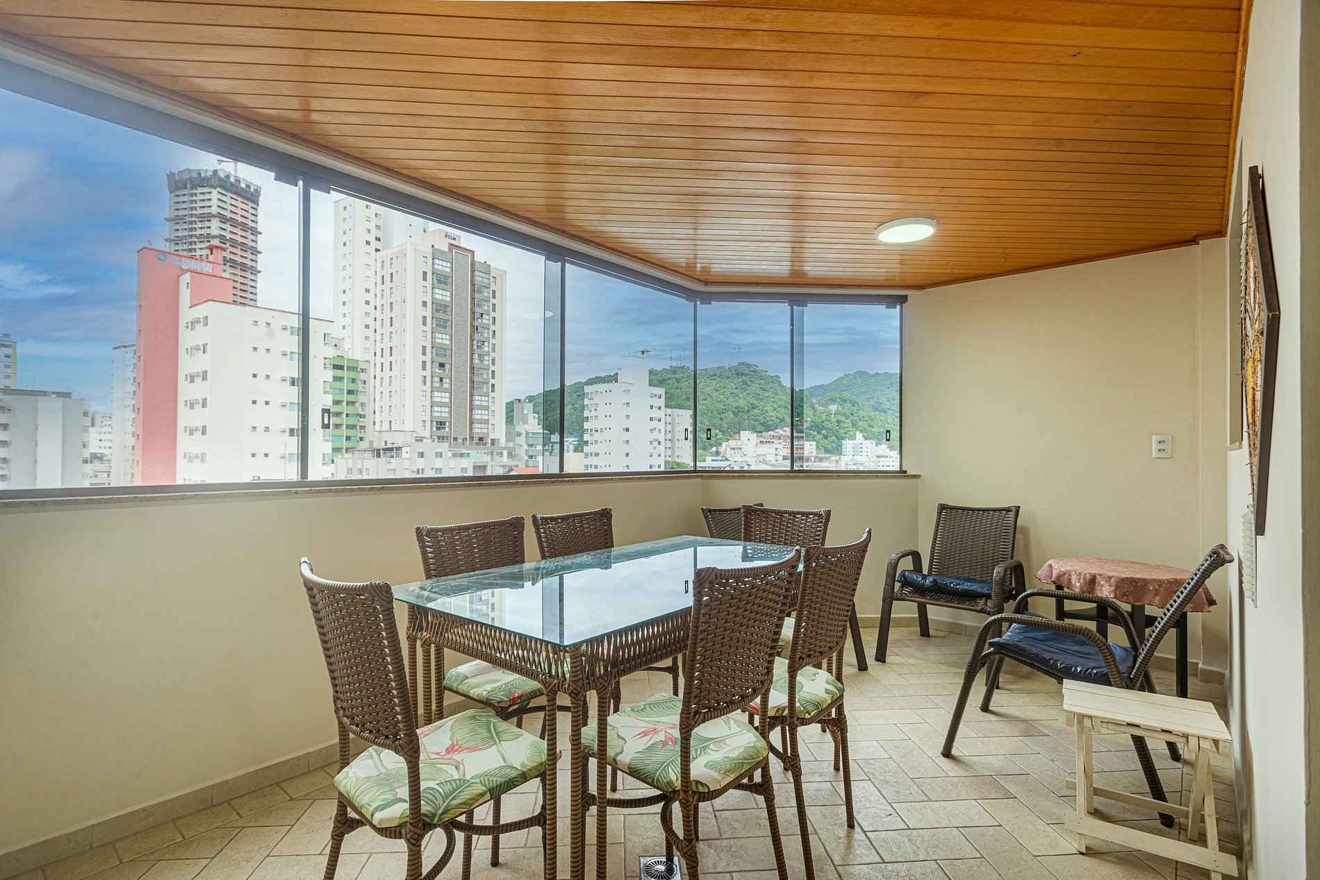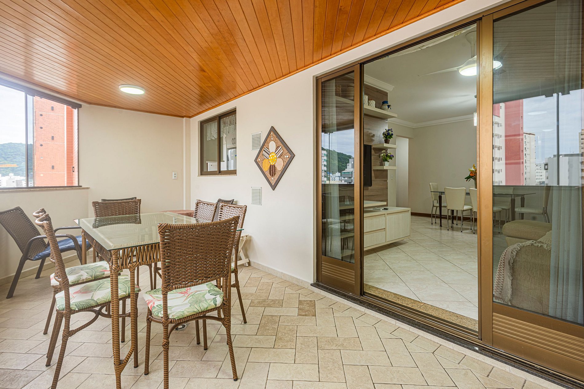 O apartamento oferece ar-condicionado nos três quartos e também na sala de estar, garantindo conforto nos dias quentes.