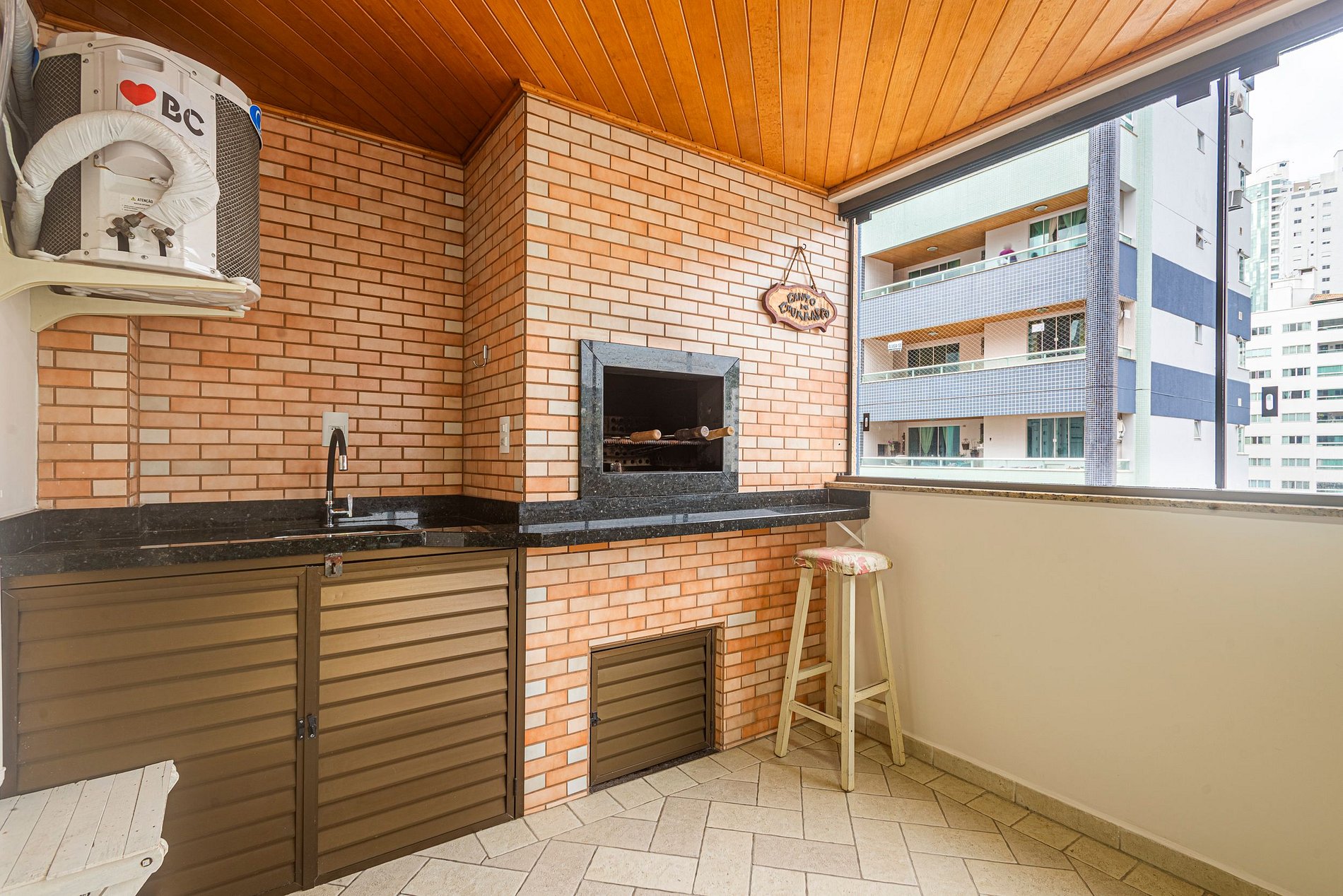 > Sacada ampla com churrasqueira a carvão
