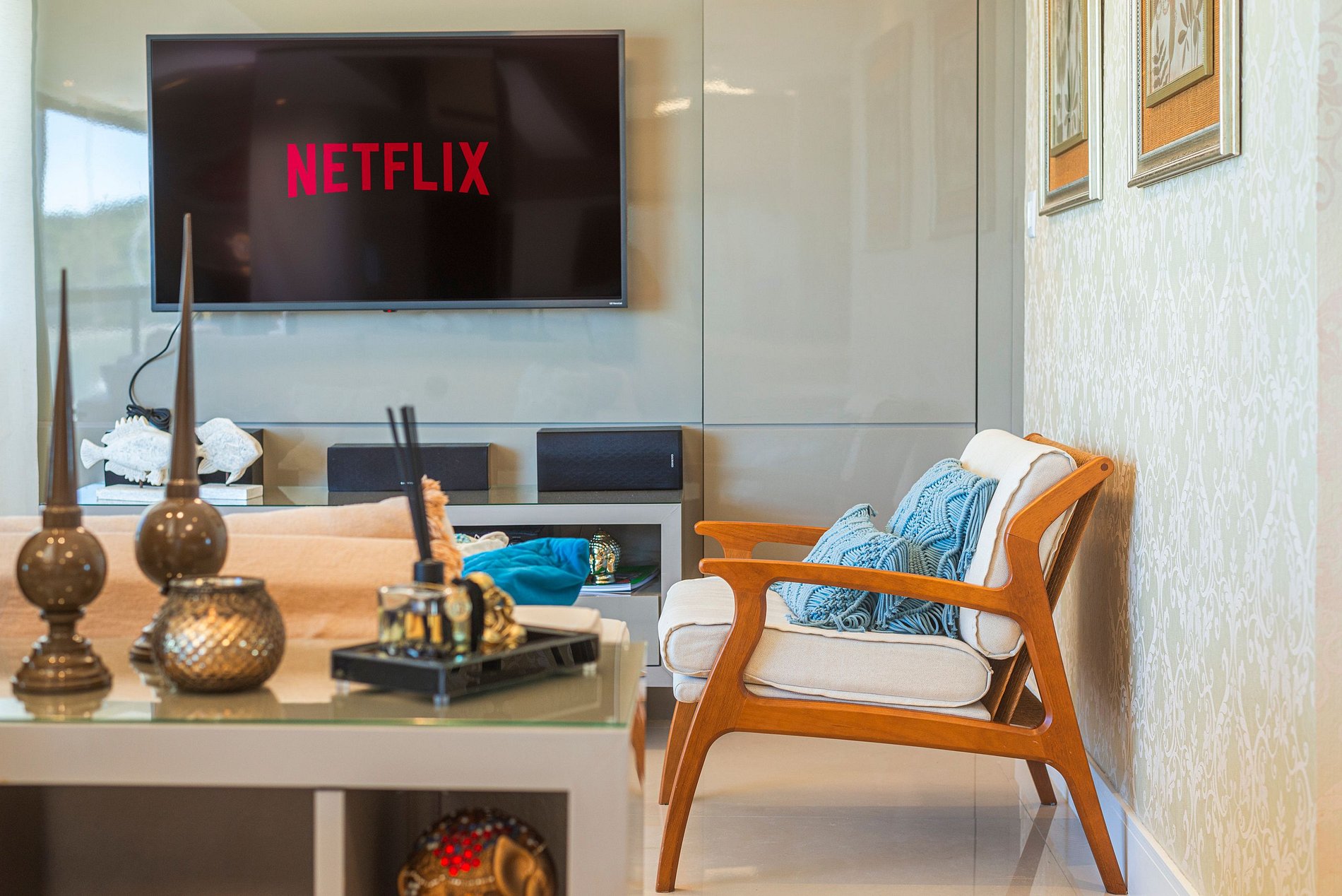 A acomodação conta com ar condicionado nos quatro quartos e também na sala de estar.
