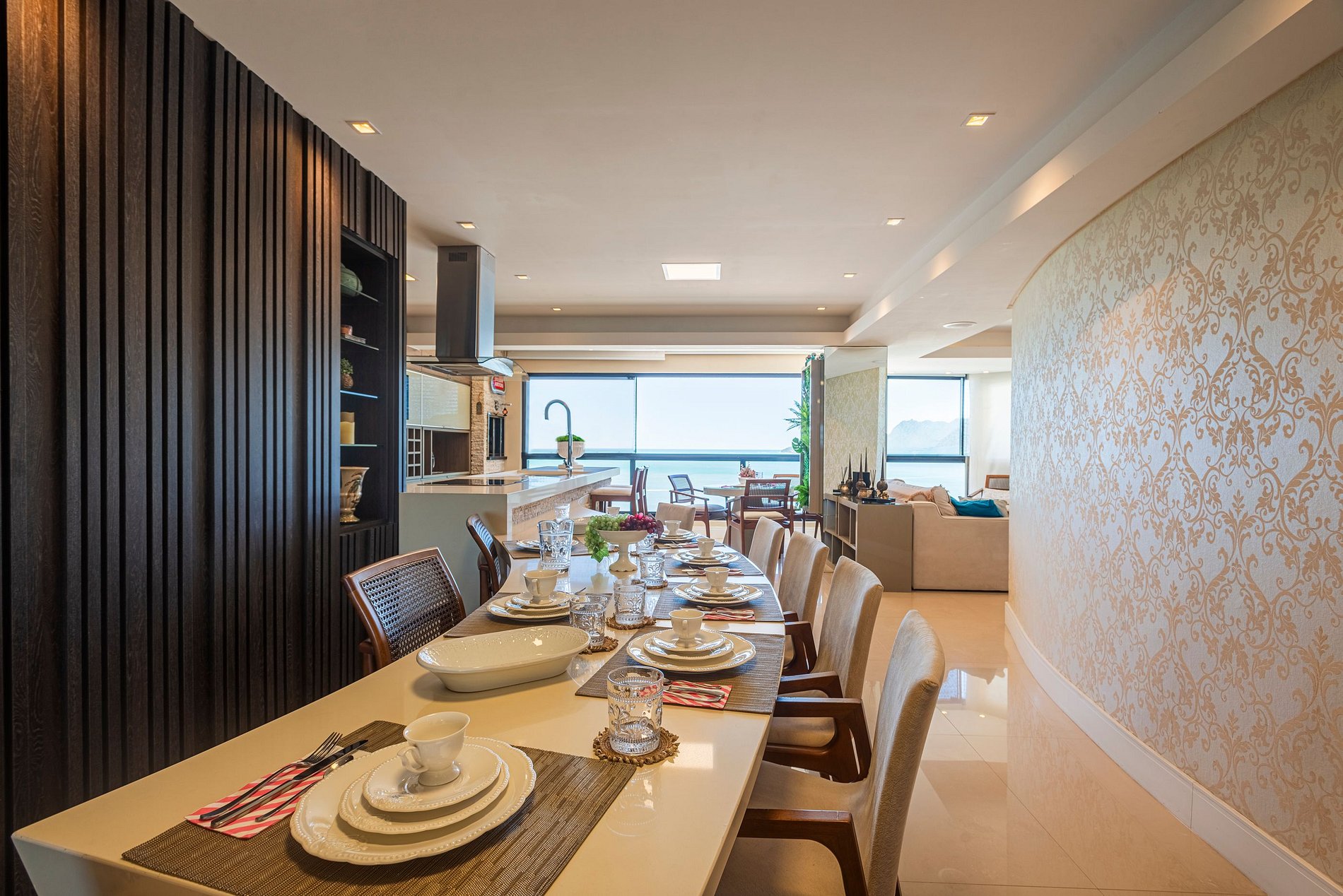 > Sacada gourmet com churrasqueira a carvão para grelhados com uma incrível vista para o mar;