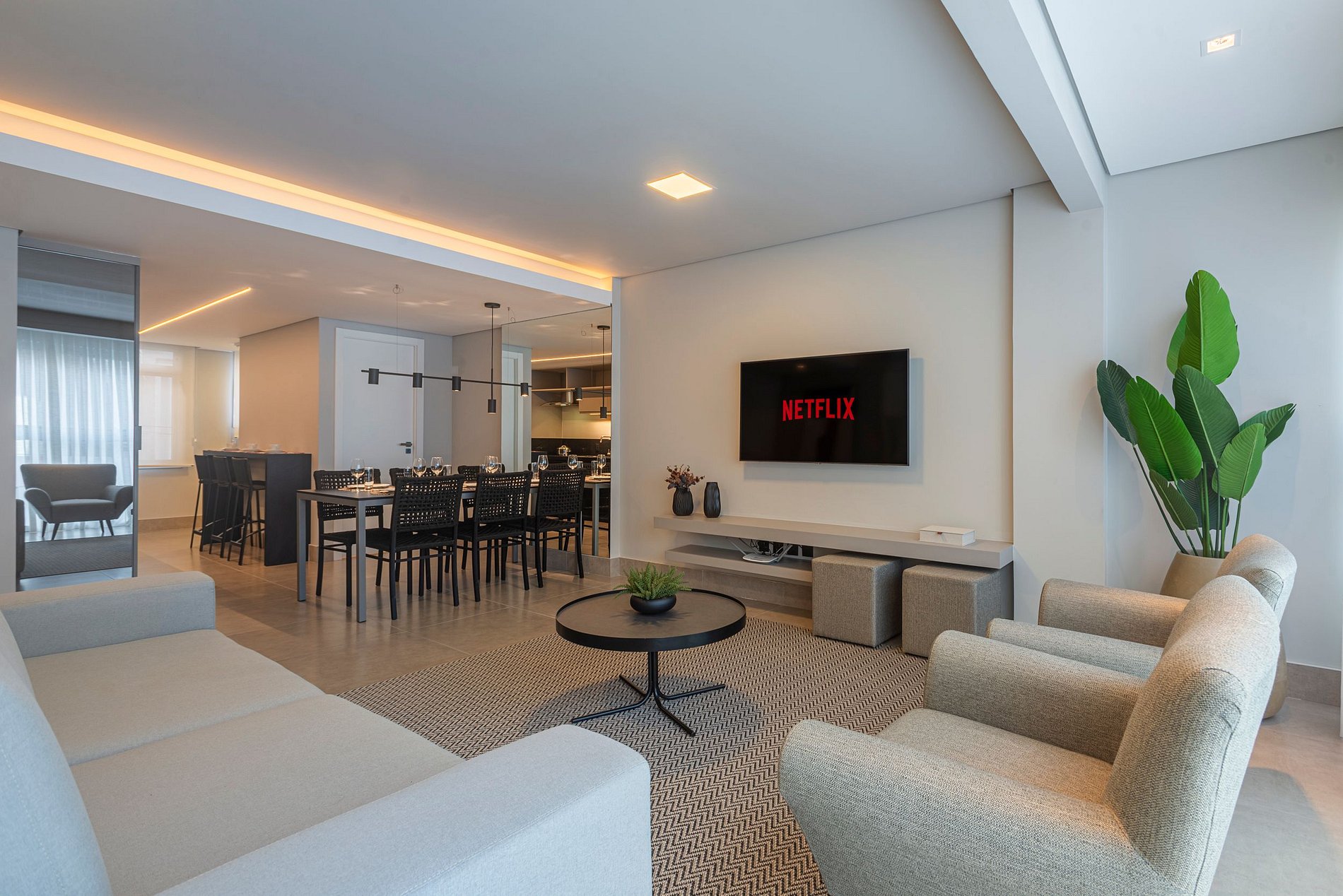 Este charmoso e moderno apartamento de dois quartos oferece uma experiência de vida moderna e conveniente em um dos destinos mais desejados da região.