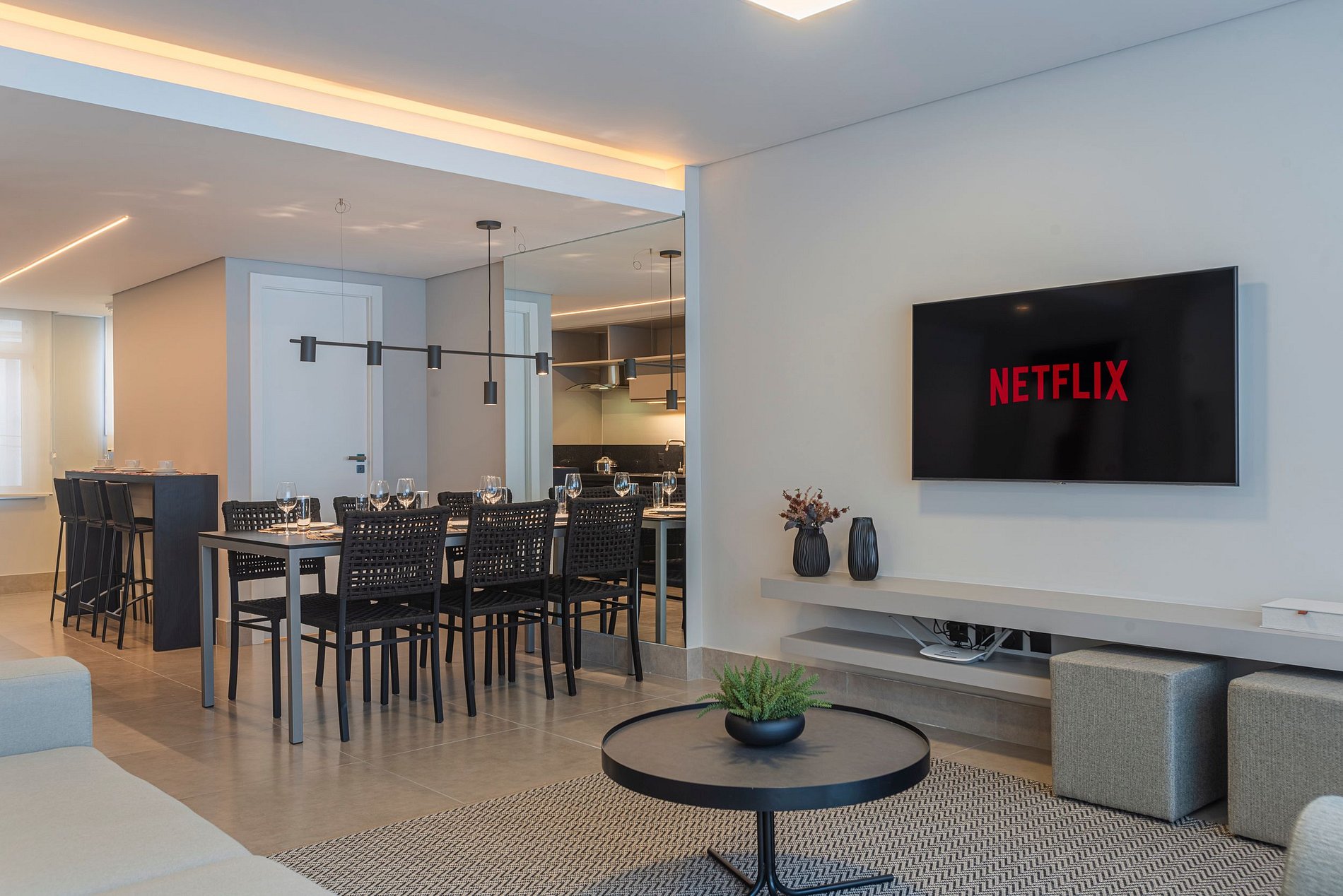 A acomodação conta com ar condicionado nos dois quartos e também na sala de estar.