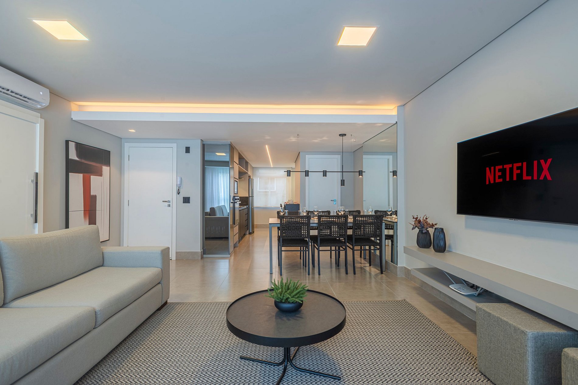 O apartamento está na área mais central de Balneário Camboriú, em meio ao calçadão da Avenida Central.