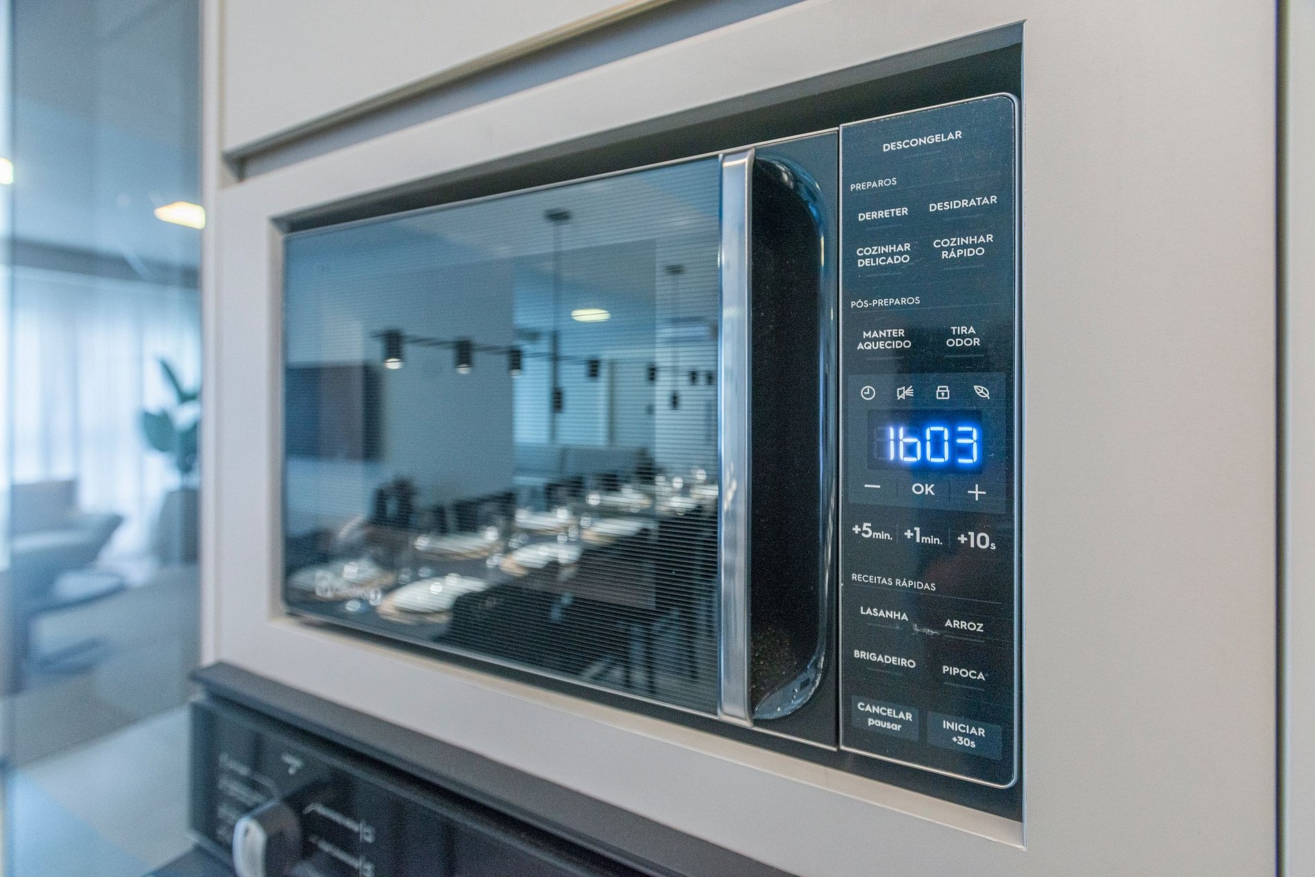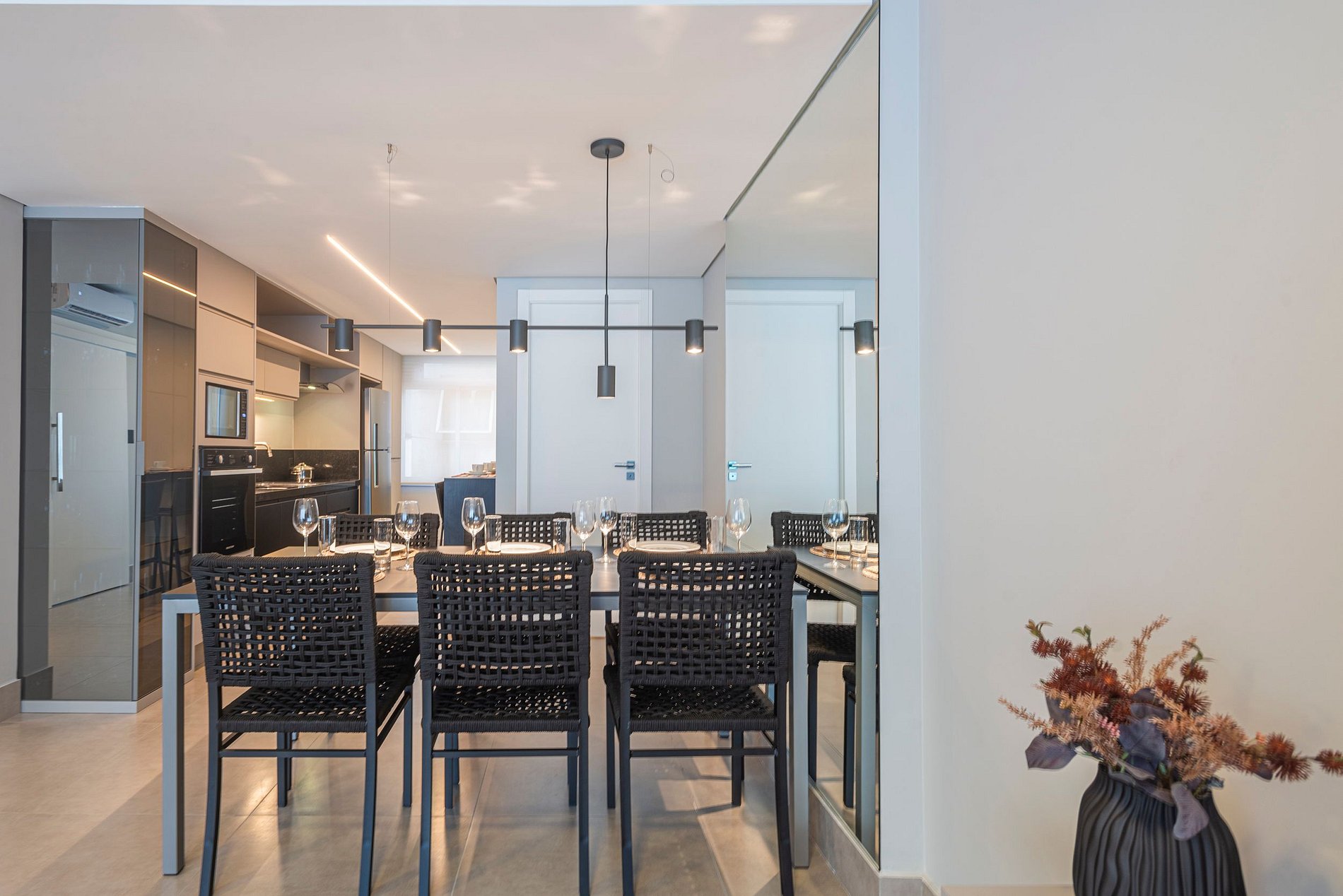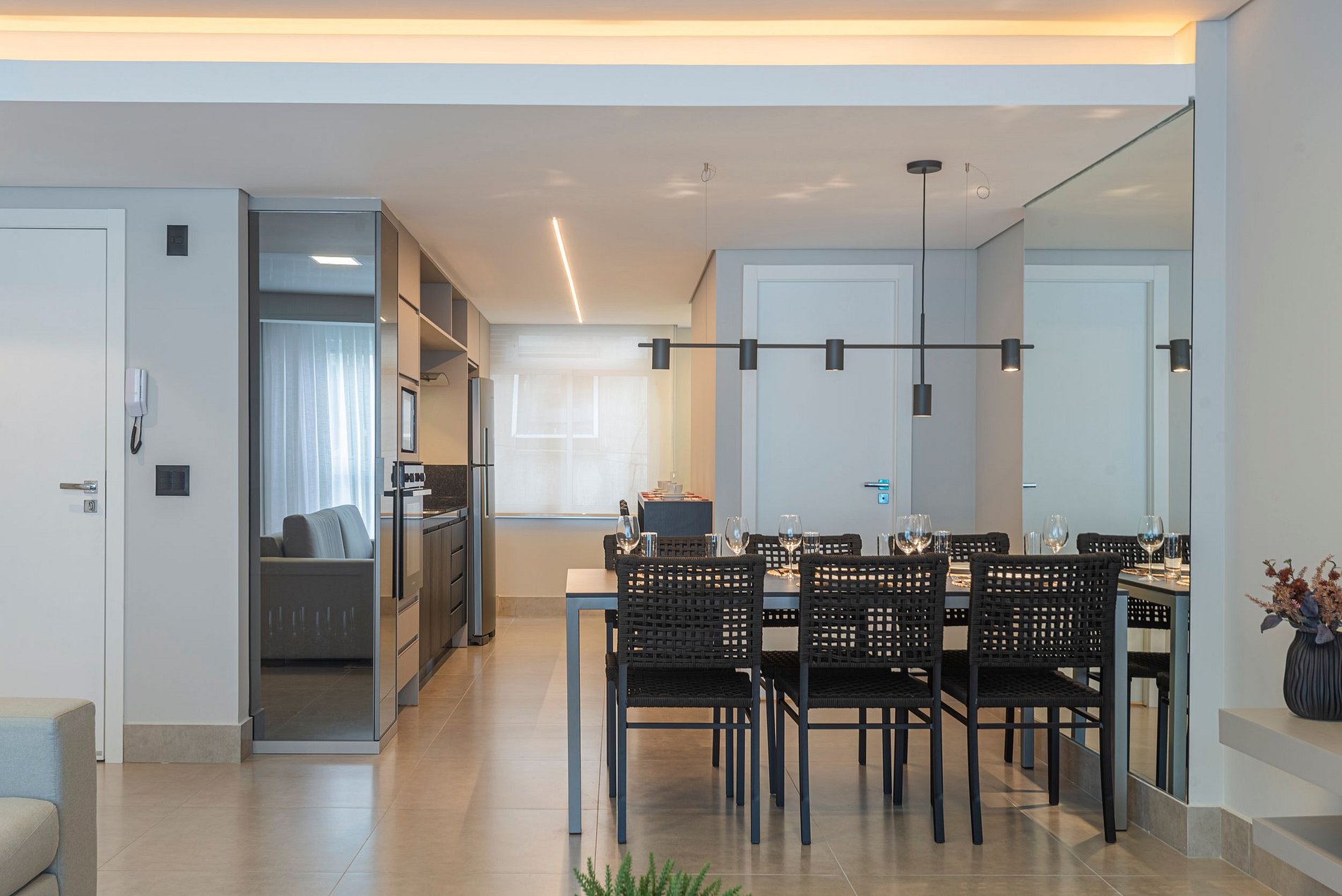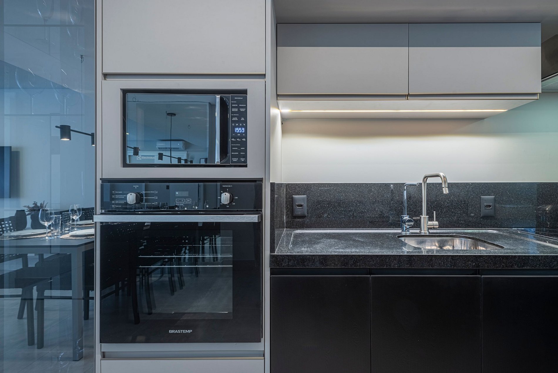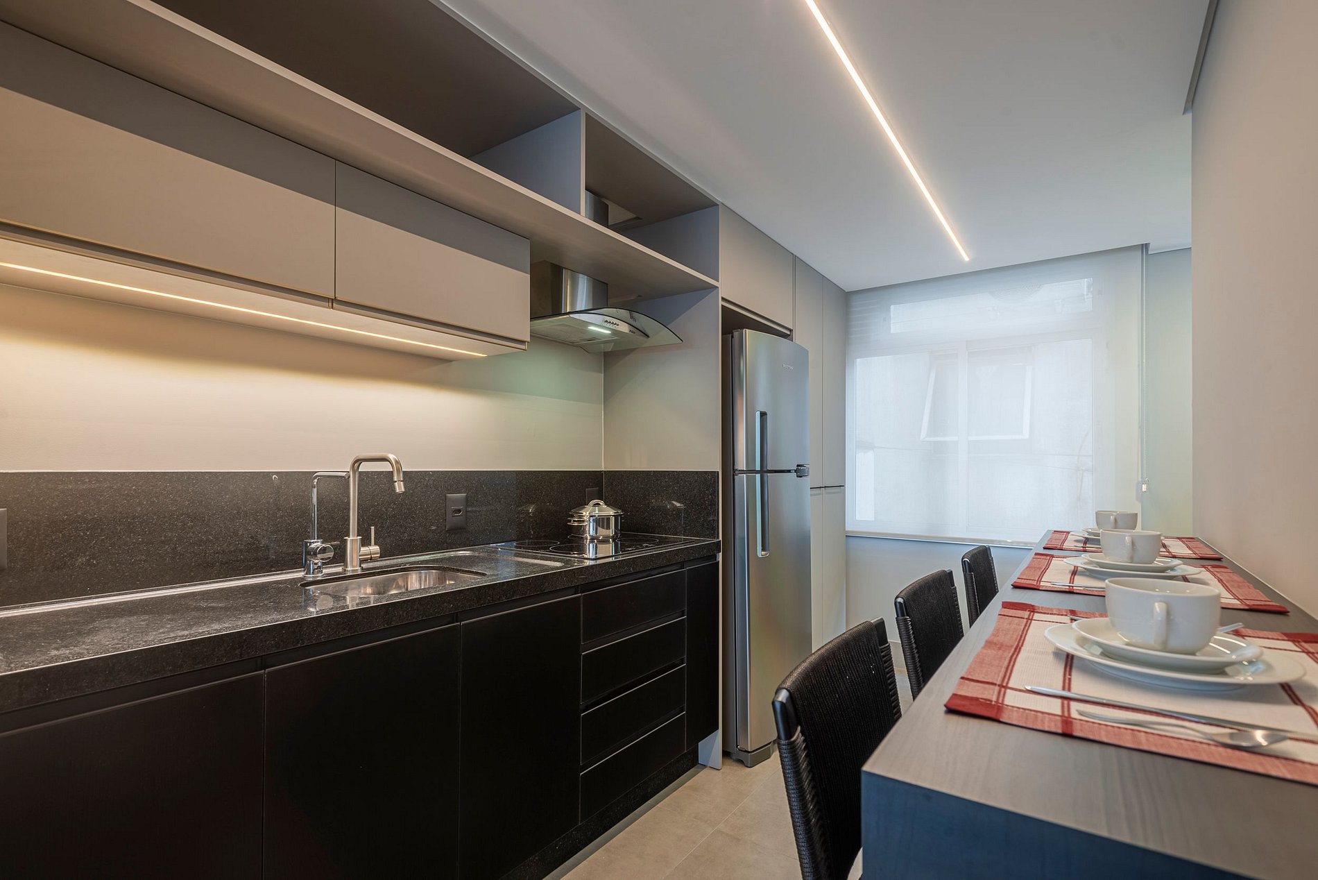 A cozinha, integrada à sala de estar, está equipada com aparelhos modernos e oferece um ambiente prático e funcional para preparar suas refeições favoritas.