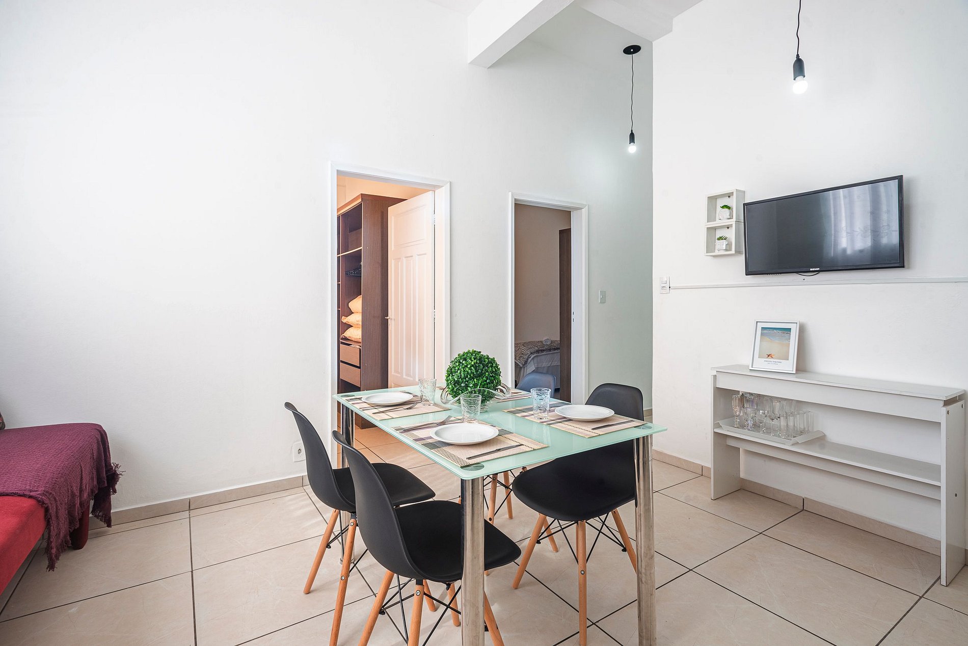 O apartamento oferece uma atmosfera acolhedora e aconchegante. Os dois quartos são equipados com ar condicionado, proporcionando uma noite de sono tranquila após um dia agitado na cidade. Além disso, a cozinha equipada permitirá que você prepare suas refeições.