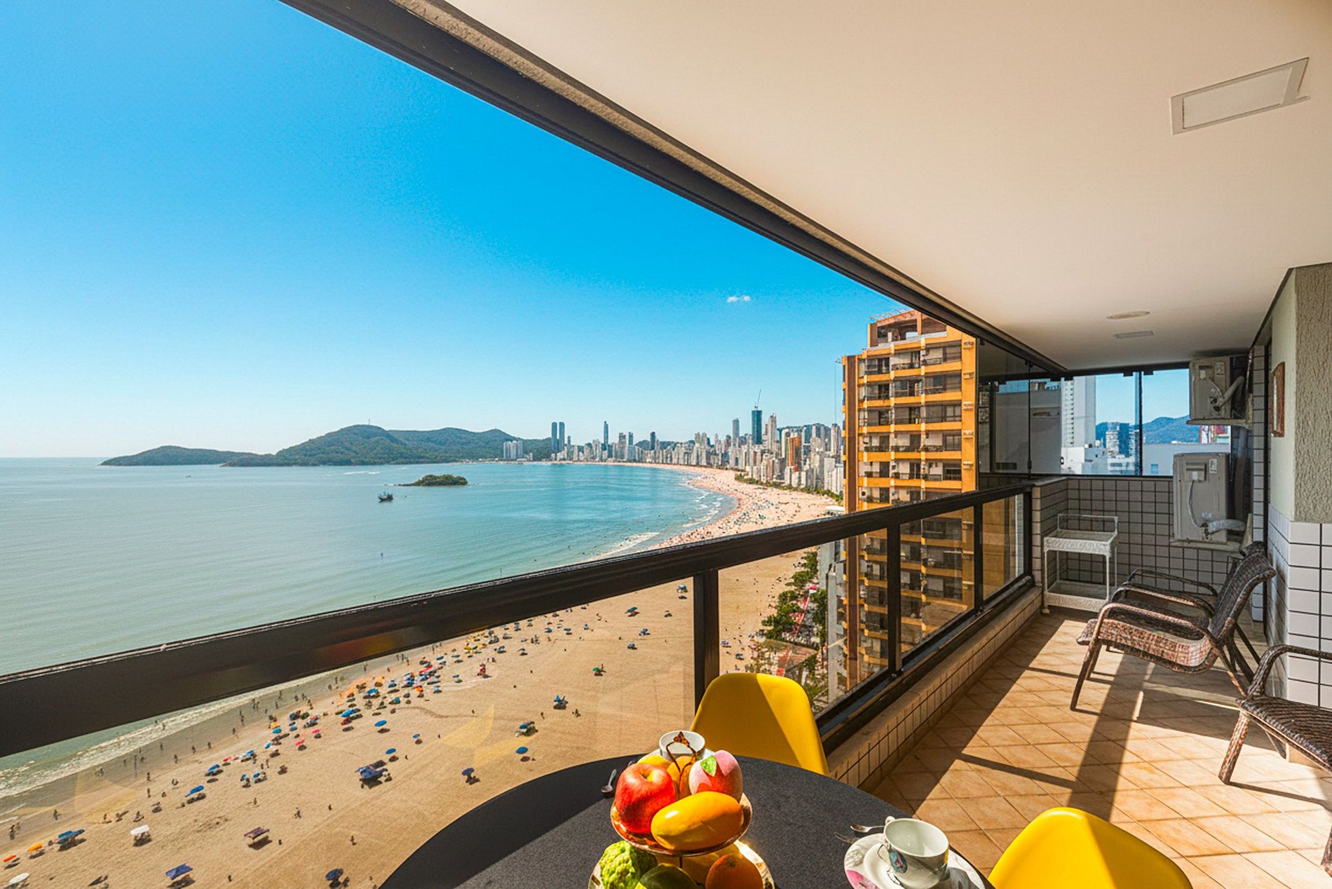 Apartamento espaçoso em condomínio de frente para o mar, com uma vista deslumbrante de toda a praia central de Balneário Camboriú!