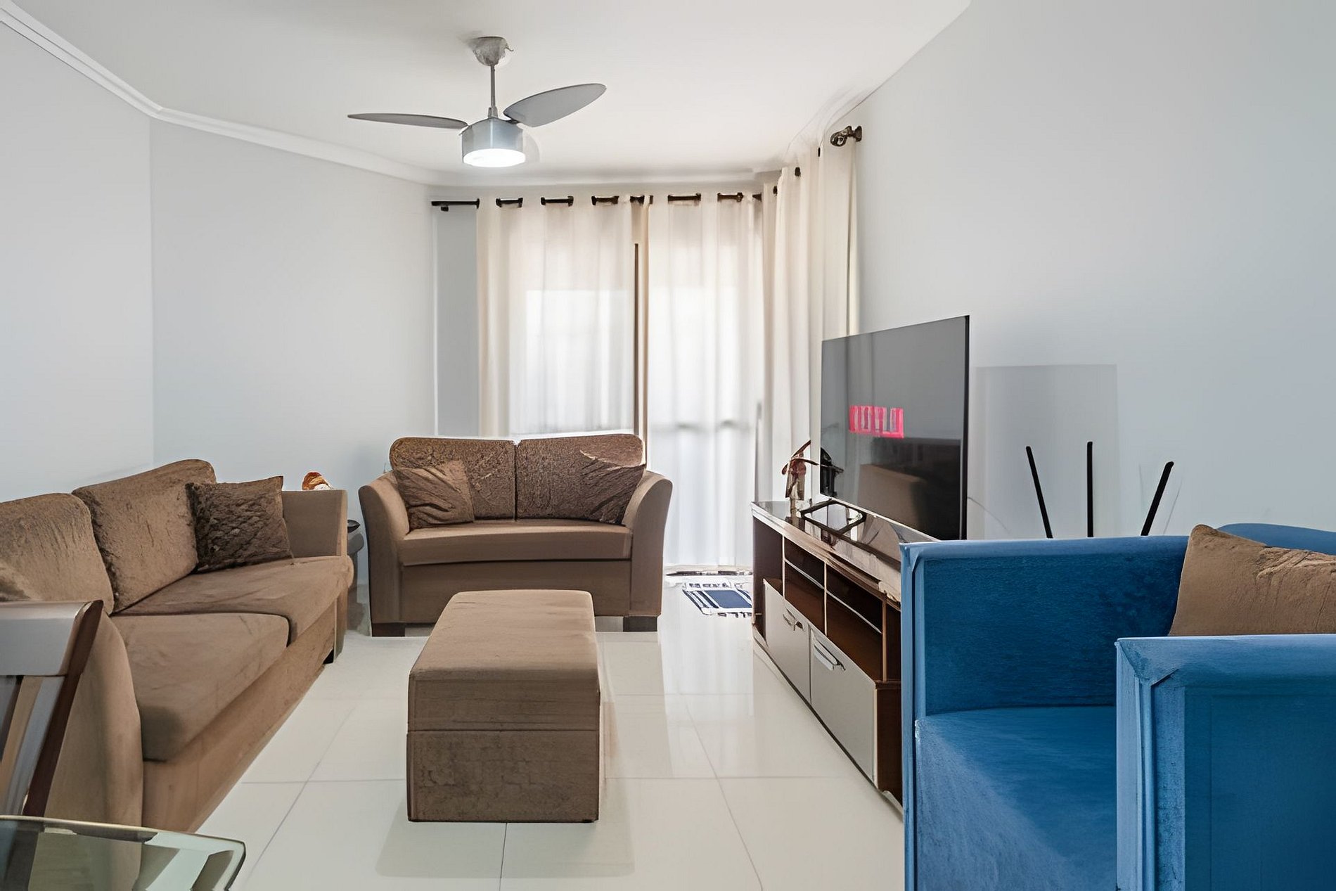 A acomodação conta com ar condicionado nos três quartos.