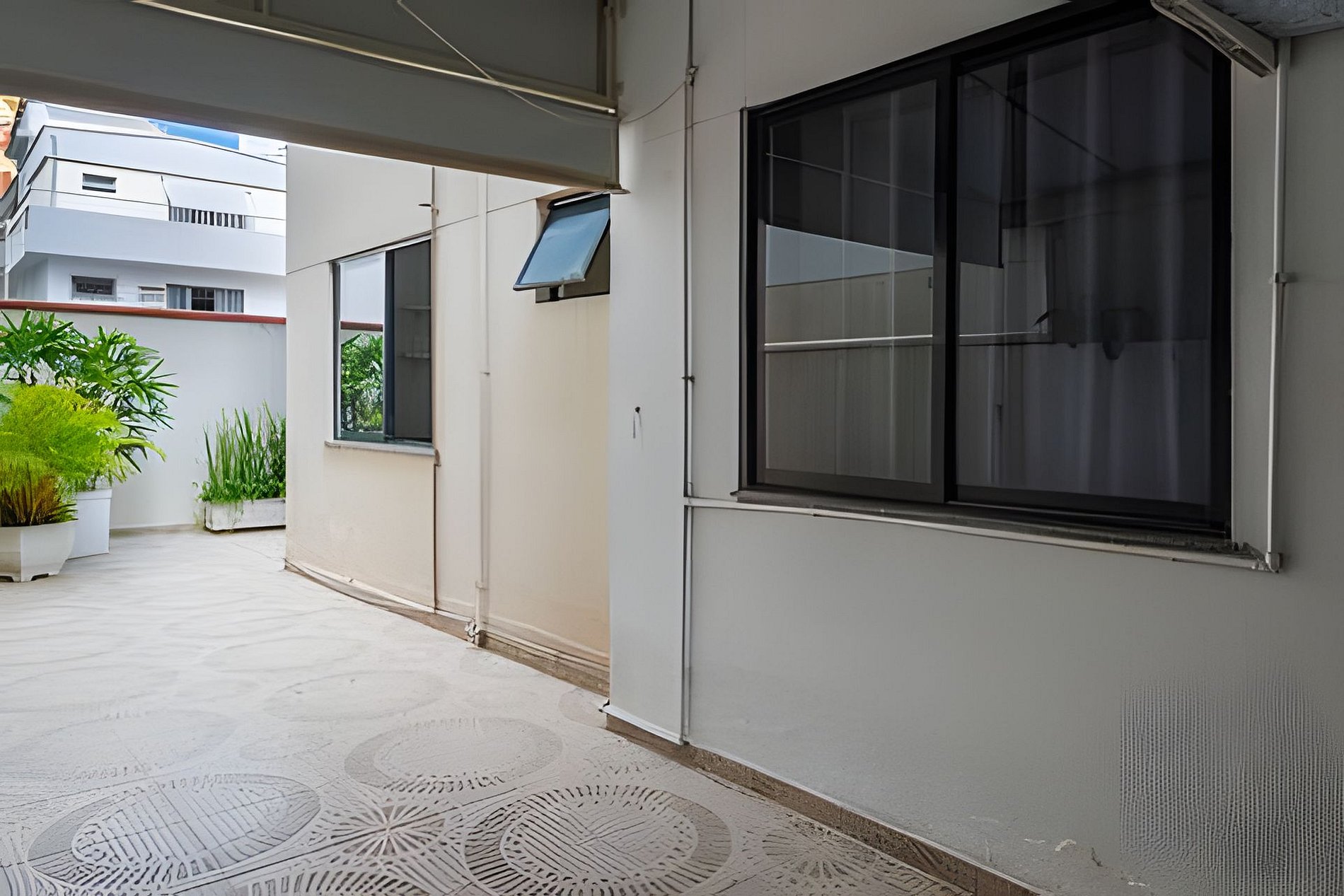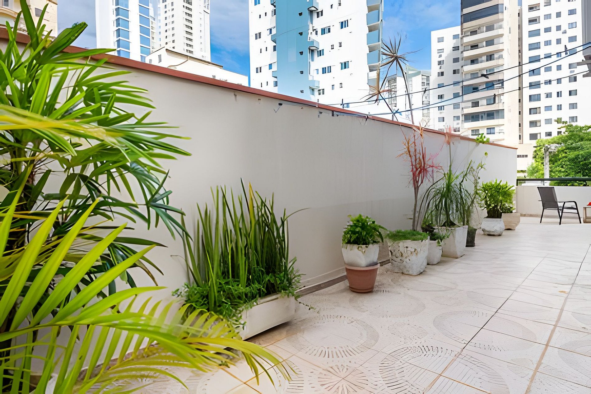APROVEITEM: o amplo terraço, por estar no primeiro andar do edifício, é aconchegante bem iluminado e ventilado, ideal para famílias grandes.