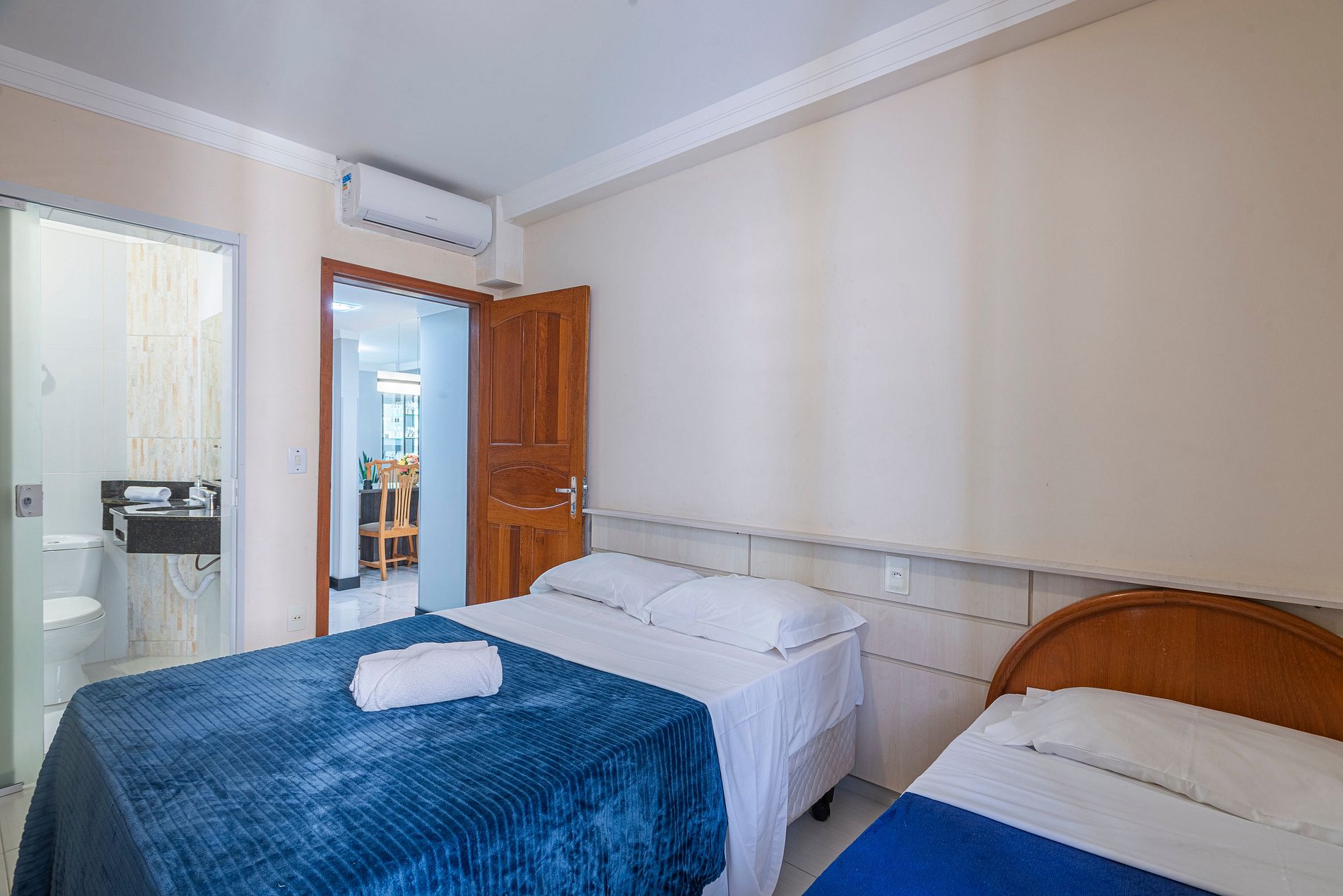A acomodação conta com ar condicionado nos três quartos.