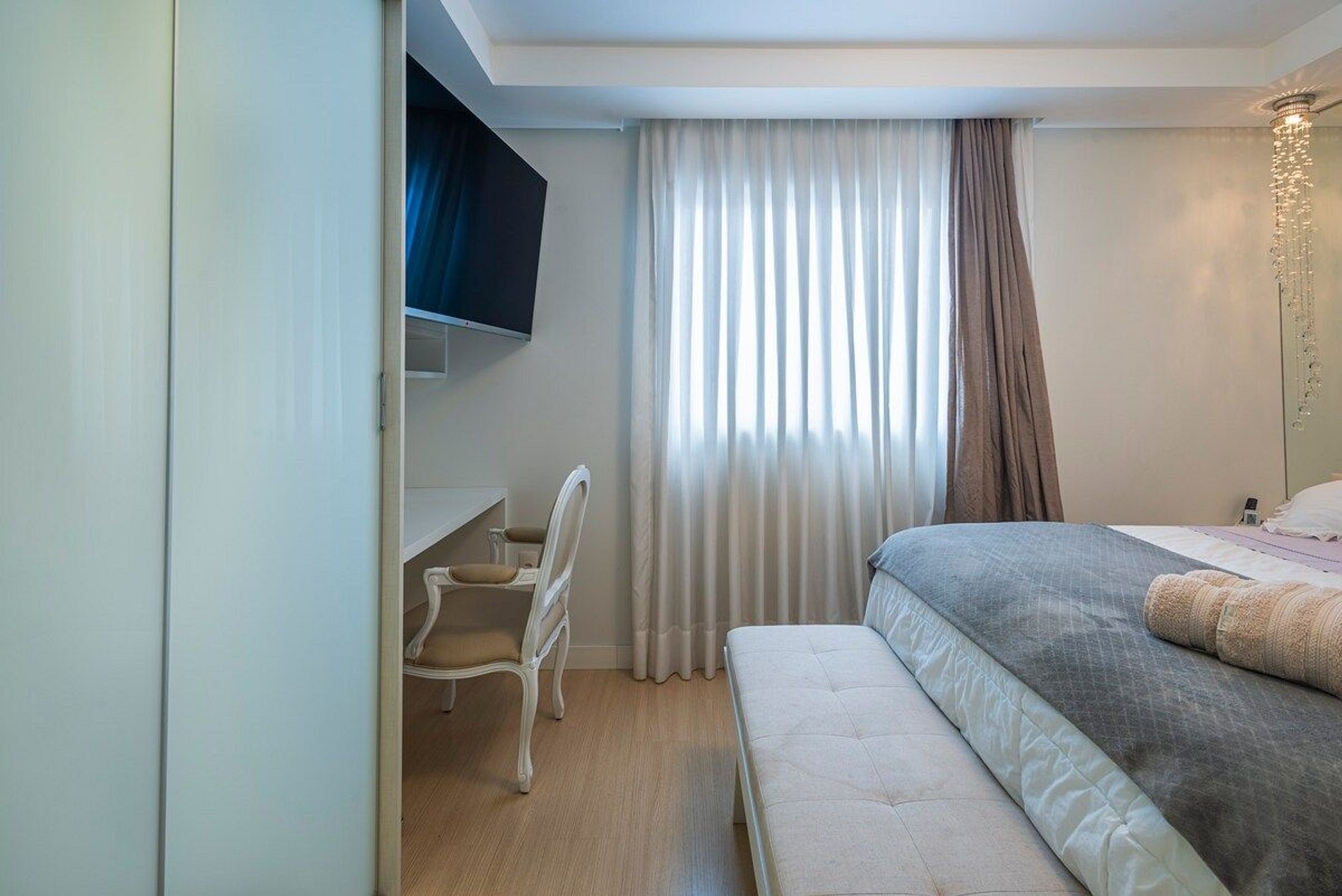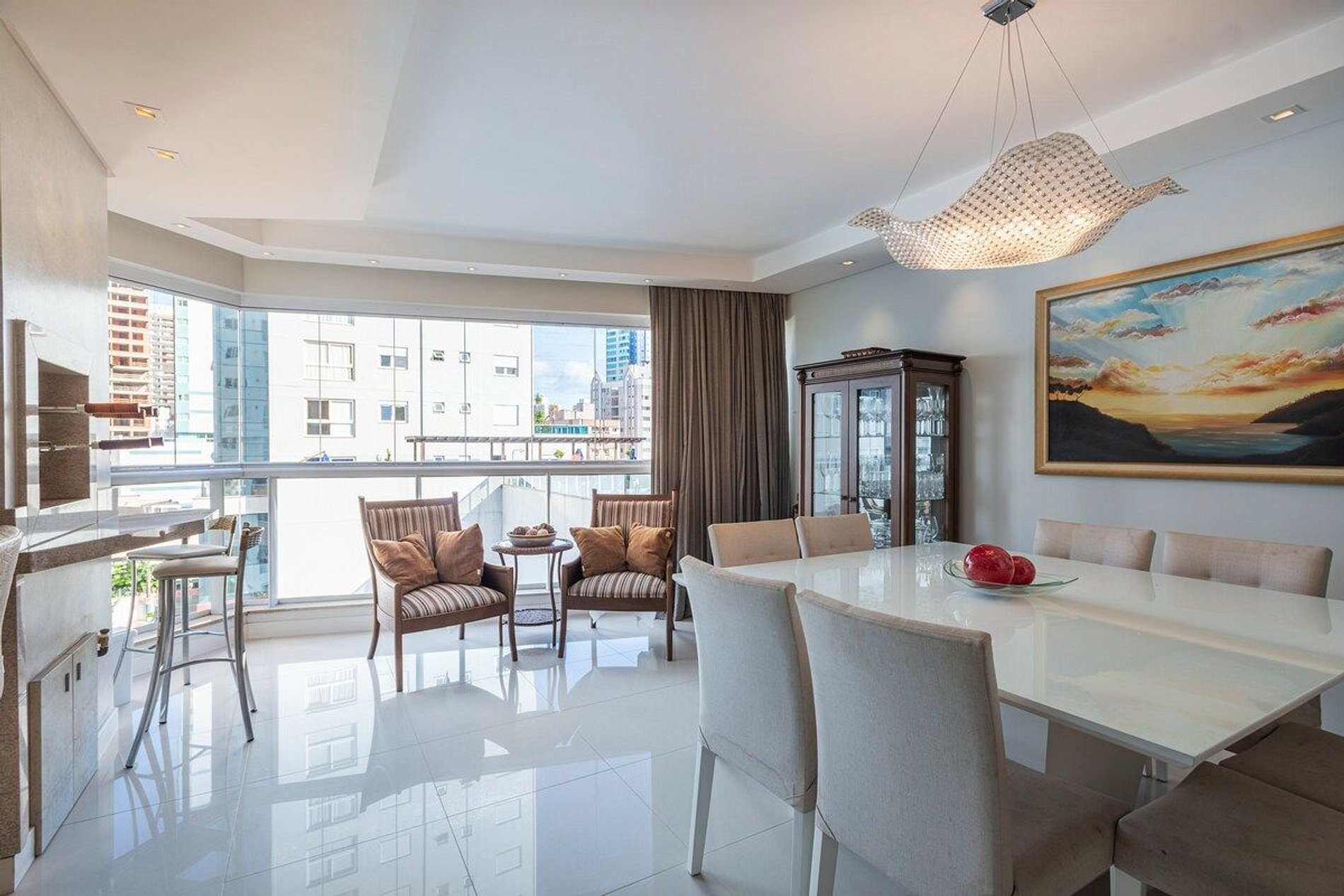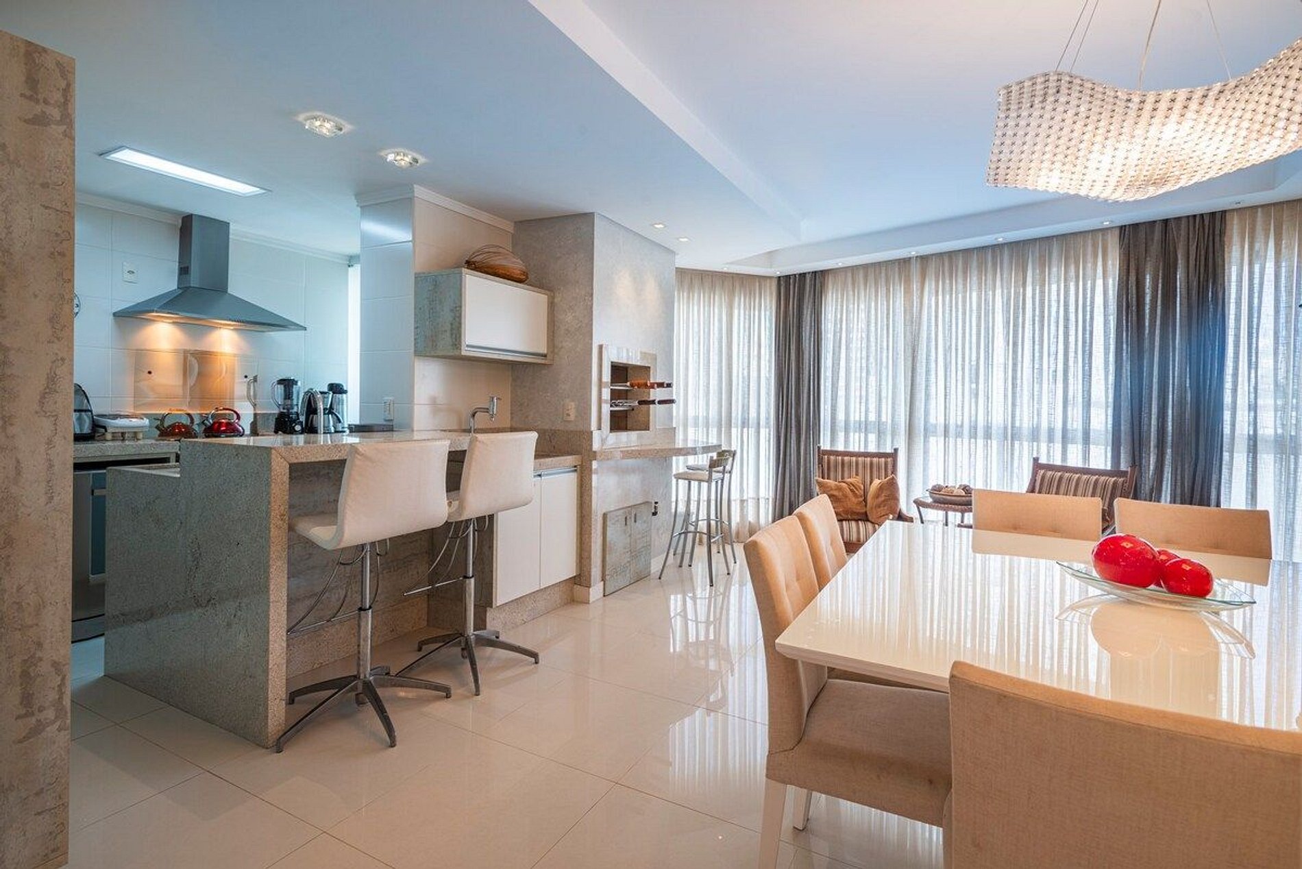 [CONDIMÍNIO FAMILIAR - APARTAMENTO DESTINADO EXCLUSIVAMENTE A FAMÍLIAS] Apartamento amplo, bem iluminado e ventilado. Com uma atmosfera moderna e clean. > TRÊS SUÍTES com ar condicionado, TV a cabo e cama QUEEN. > Roupas de CAMA E BANHO a disposição. > Varanda integrada com CHURRASQUEIRA, ótima para passar bons momentos em FAMÍLIA. > DUAS VAGAS de garagem privativas. Para quem busca o espaço e conforto de um apartamento alto padrão, em uma localização central que permite fazer tudo a pé.