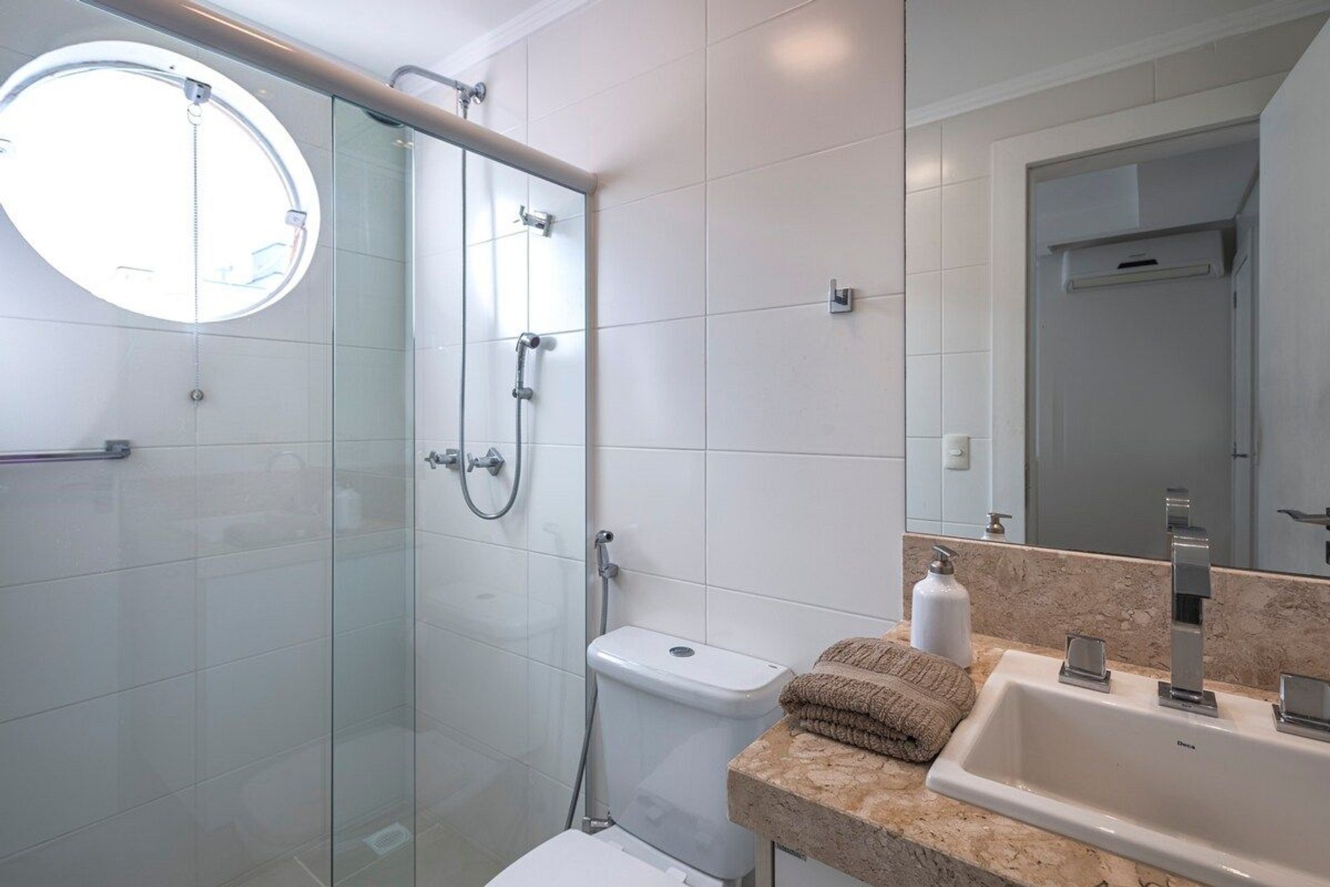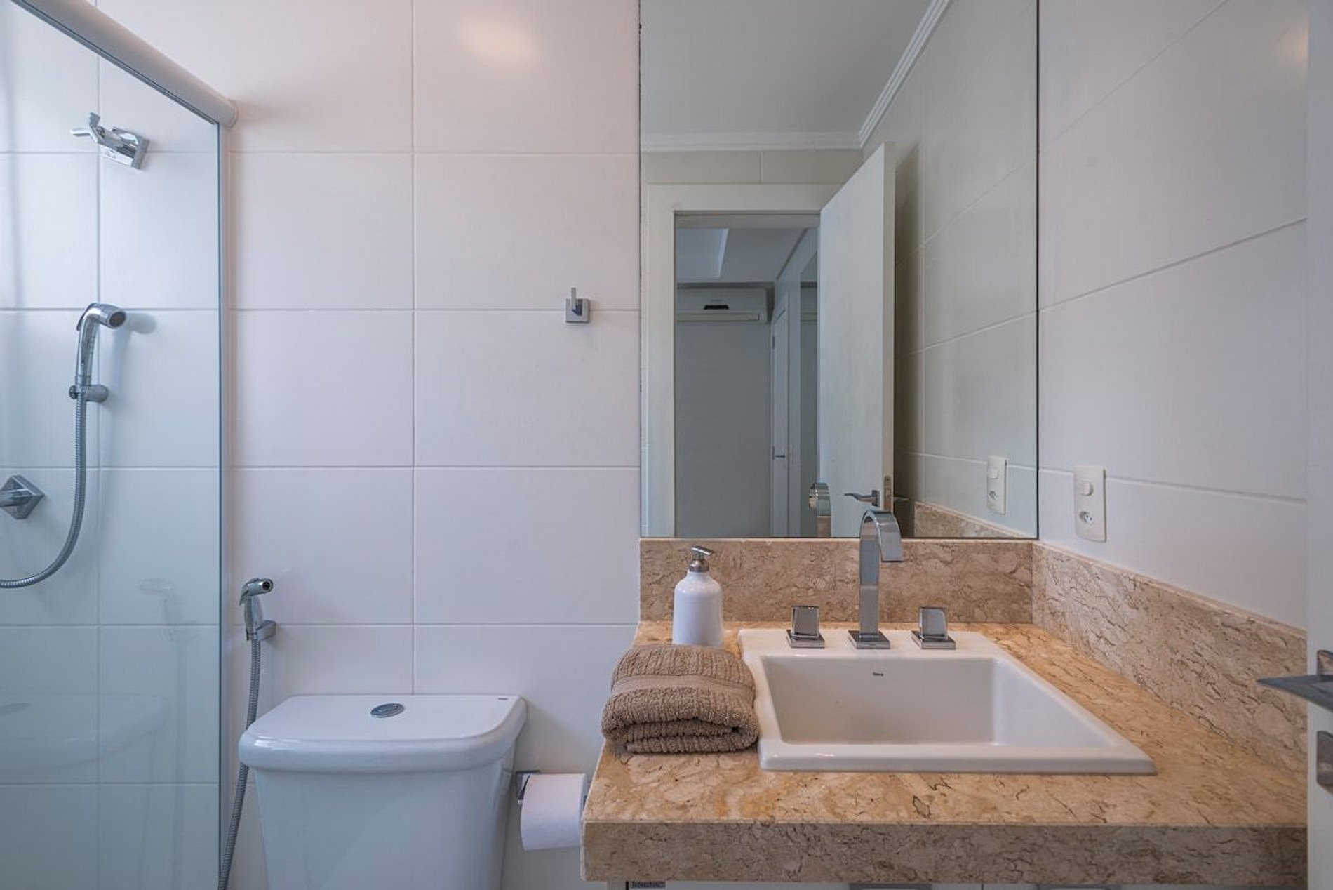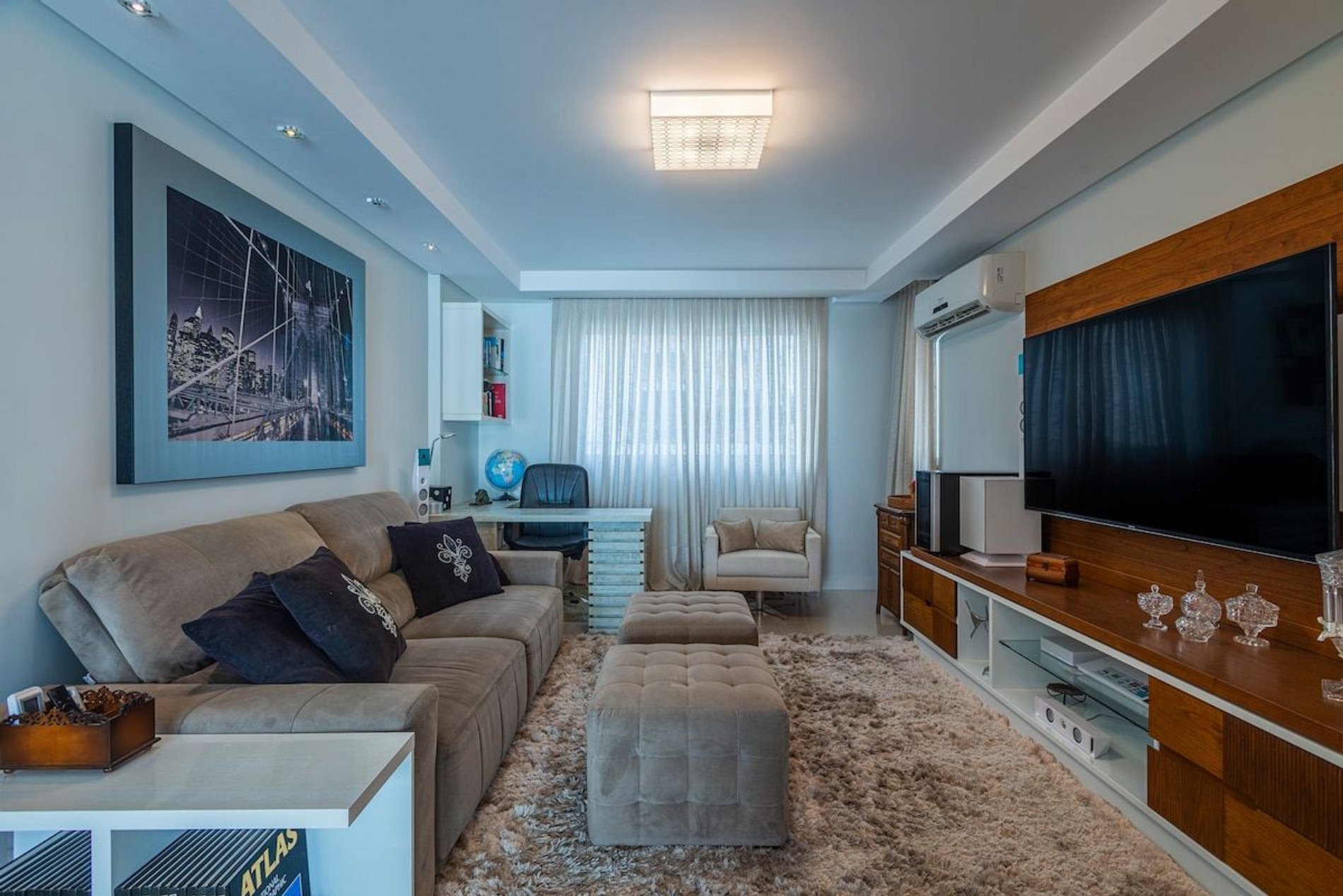 A acomodação conta com ar condicionado nas três suítes e também na sala de estar.