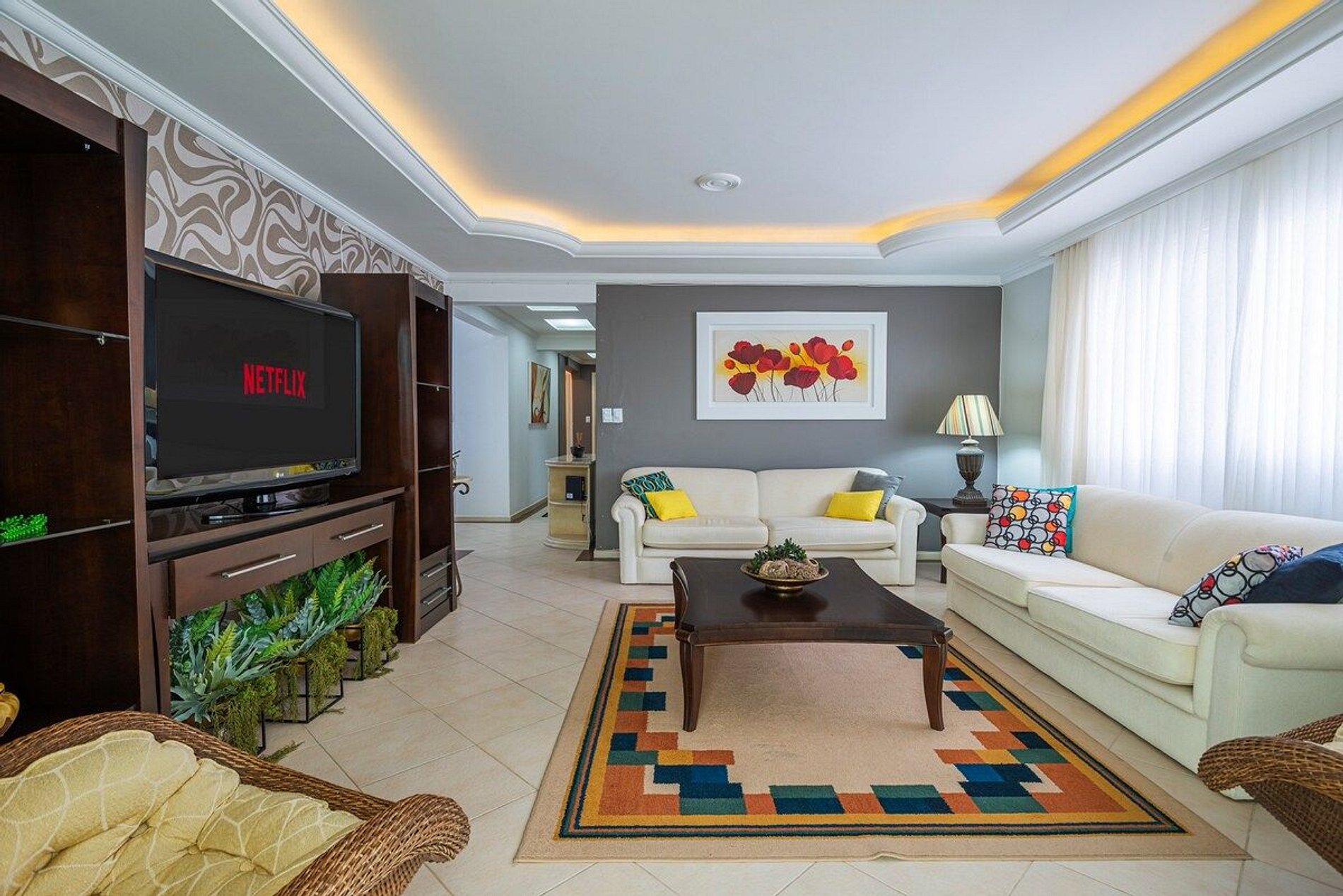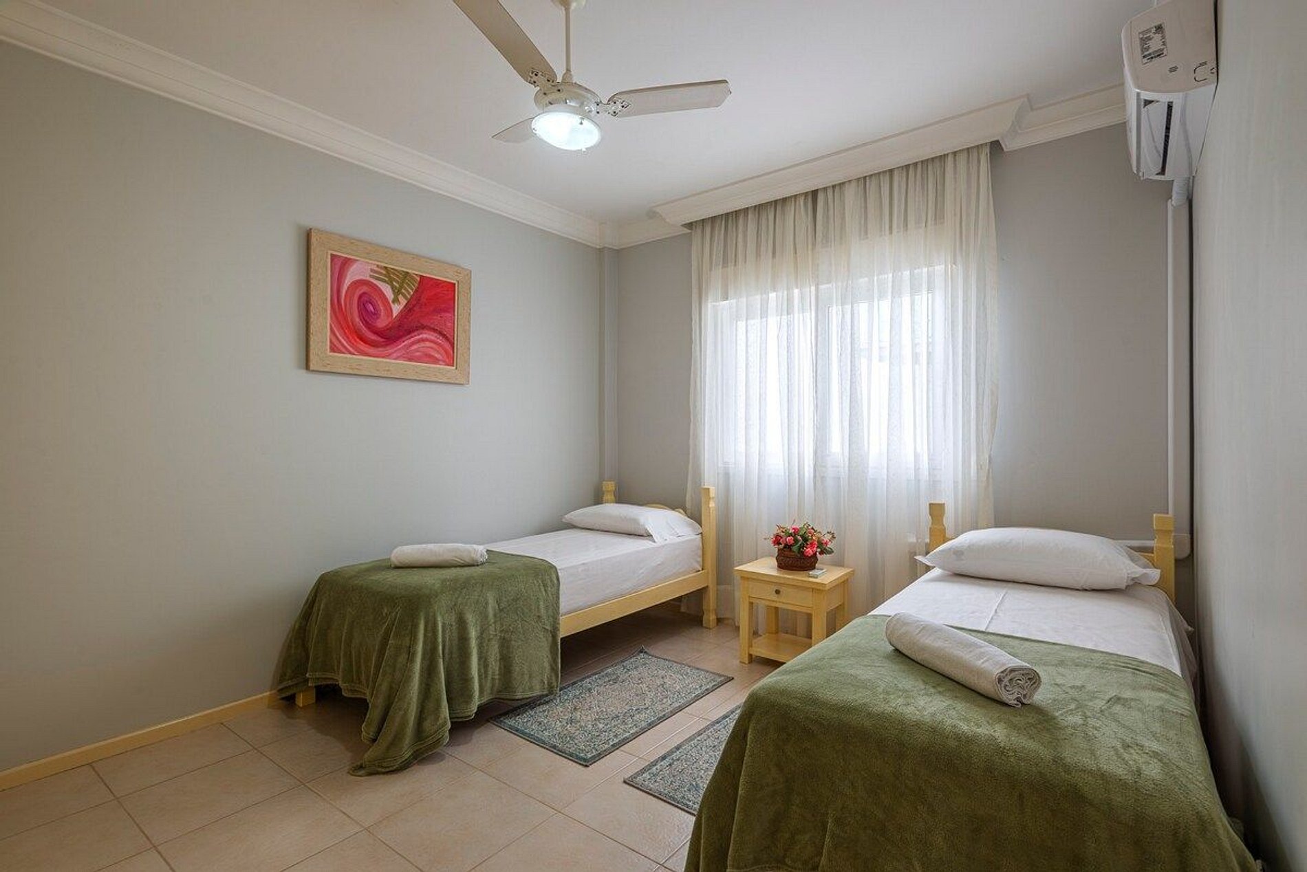 A acomodação conta com ar condicionado nos três quartos e também na sala de estar.