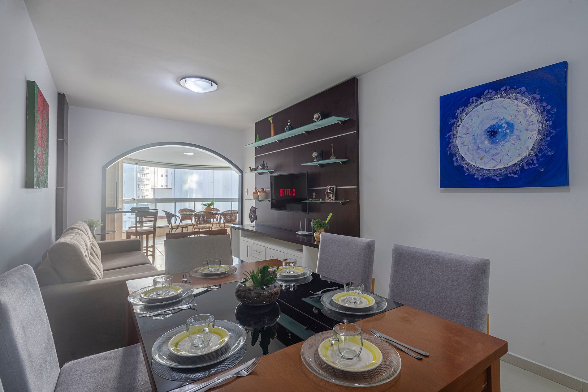 Não se preocupe em trazer nada além de itens pessoais. Disponibilizamos tudo o que é necessário para uma estadia tranquila e agradável. - Internet Wi-Fi. - TV a cabo. - SmarTV com Netflix. - Cozinha completa + churrasqueira com acessórios. Vale lembrar: o condomínio fica na Avenida Atlântica, em frente a praia central de Balneário Camboriú. No entanto, o apartamento não tem vista para o mar, conforme as fotos dispostas no anúncio.
