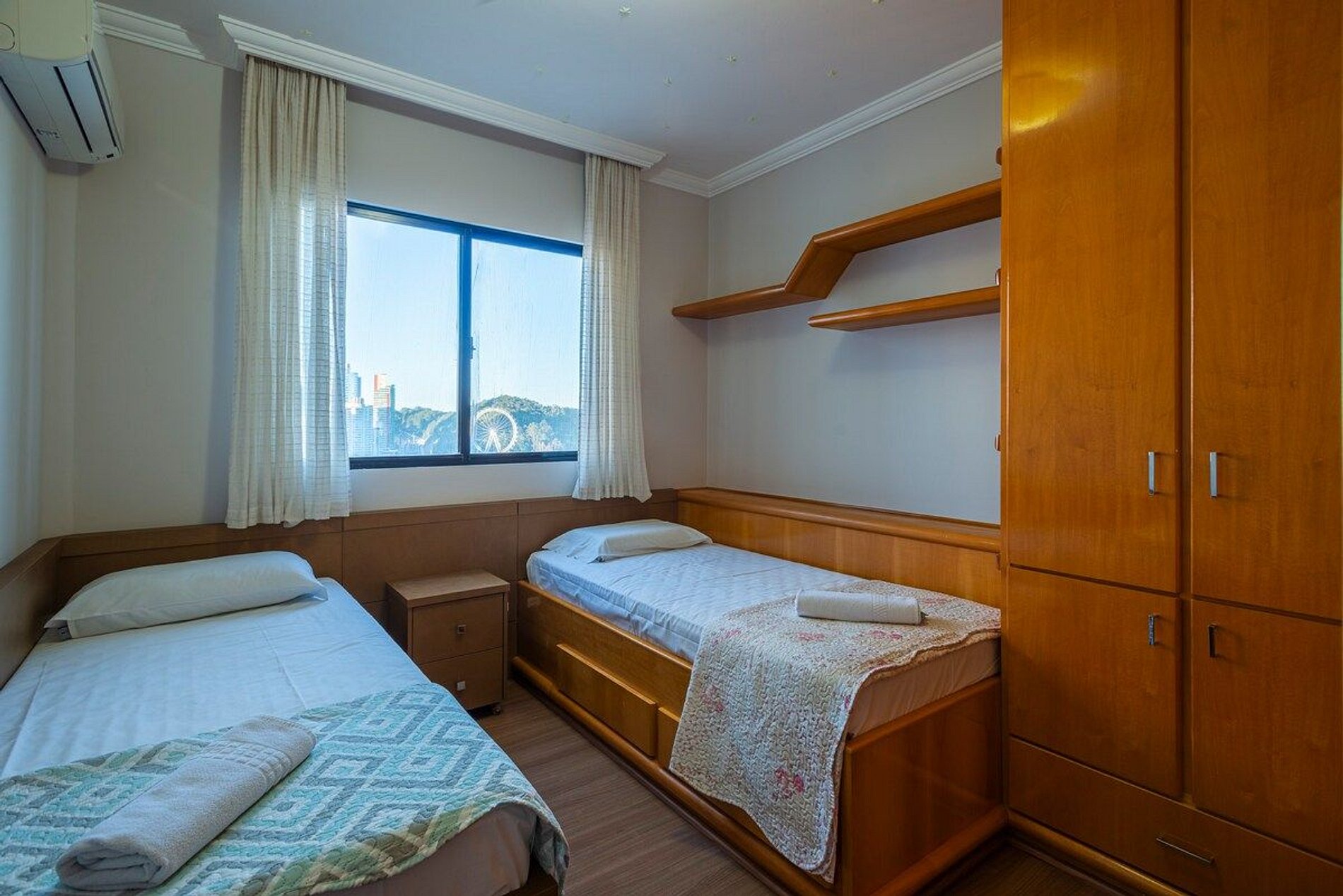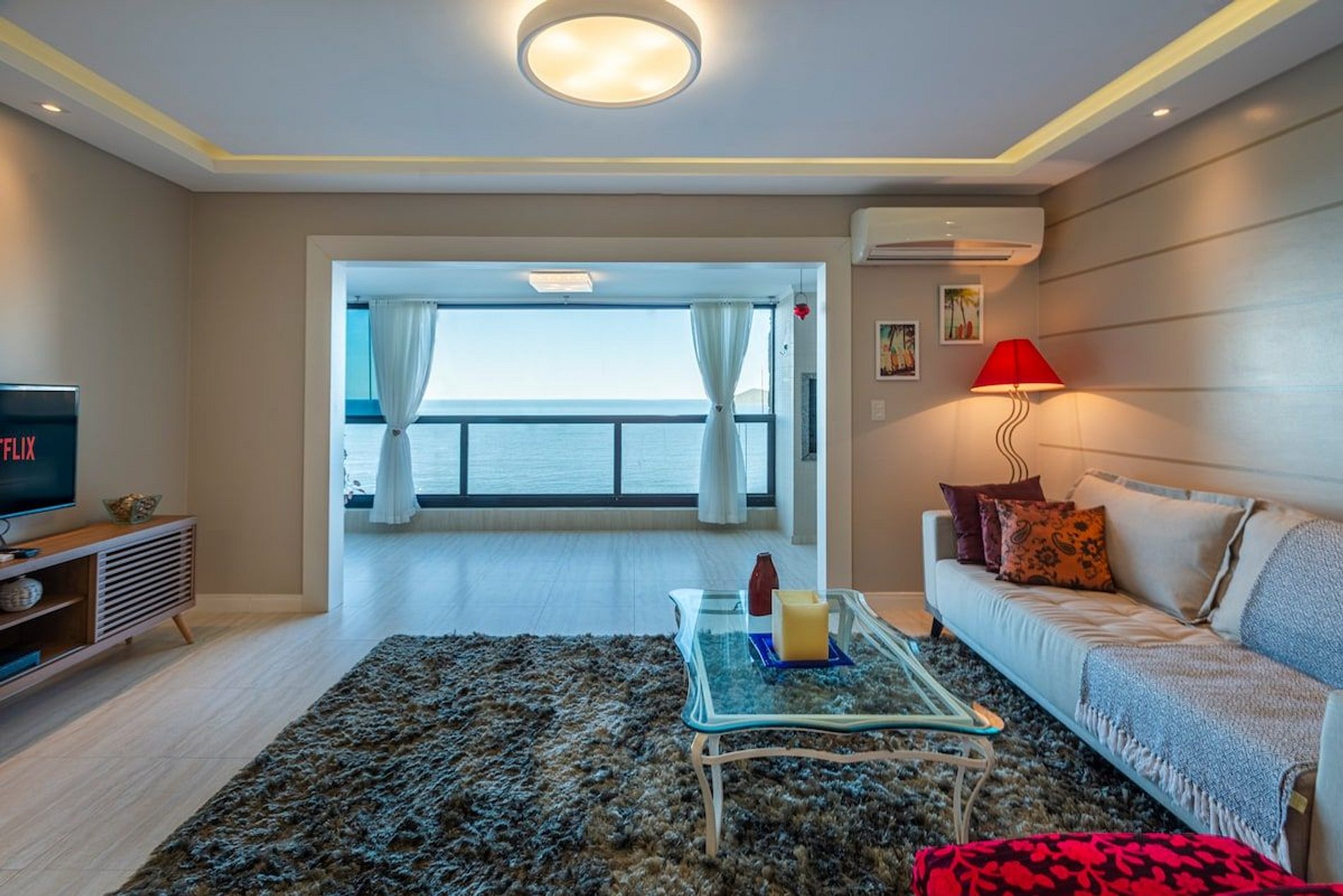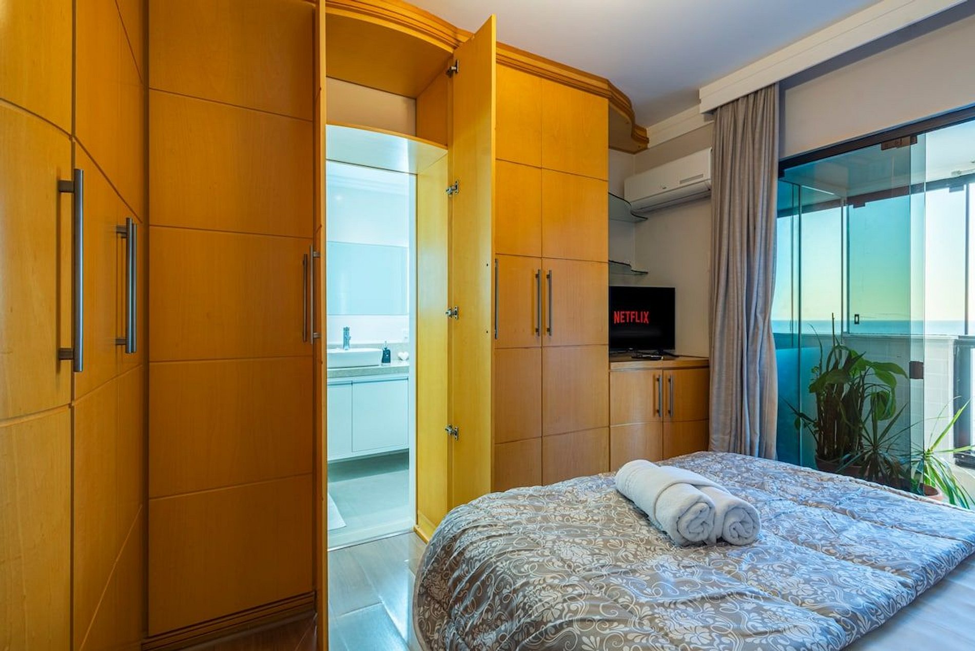 A acomodação conta com ar condicionado nos três quartos e também na sala de estar.