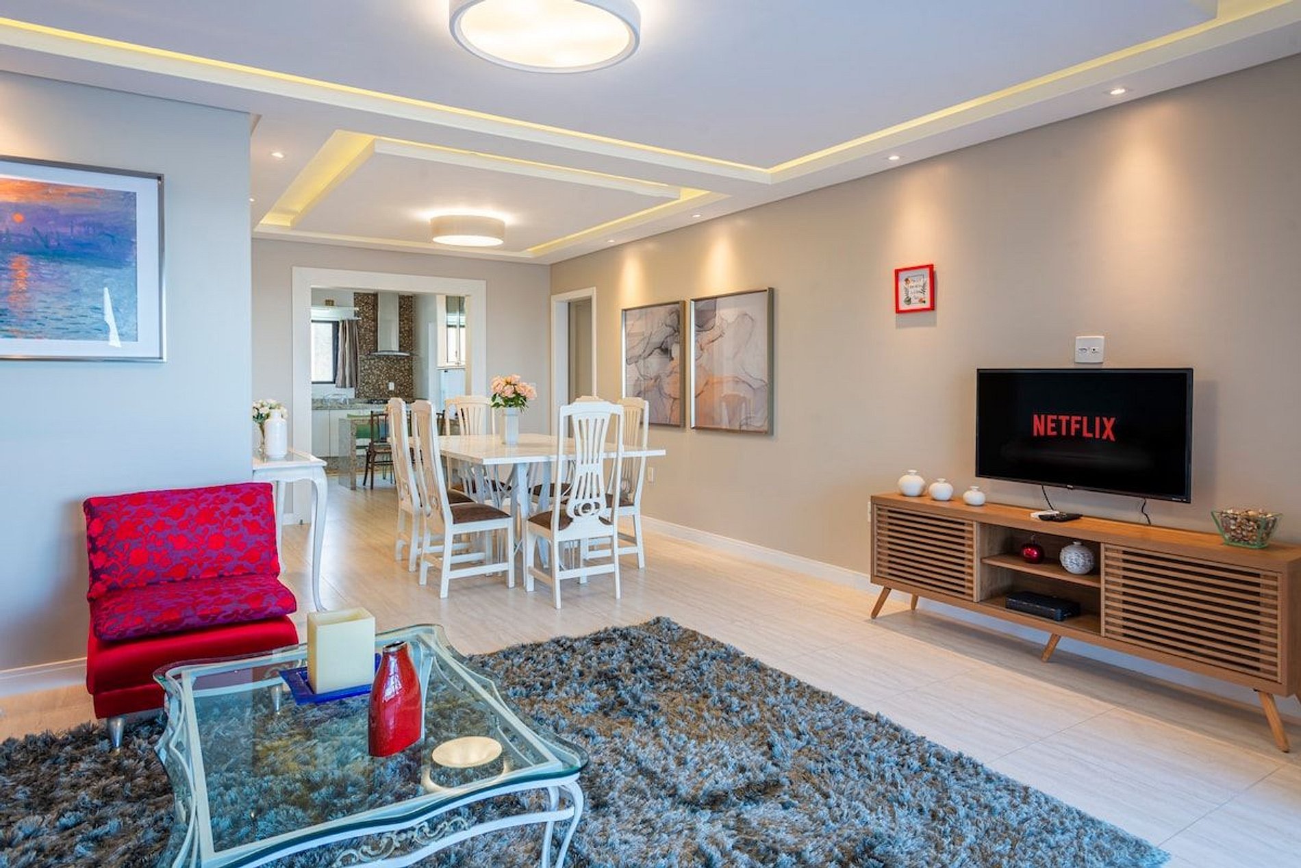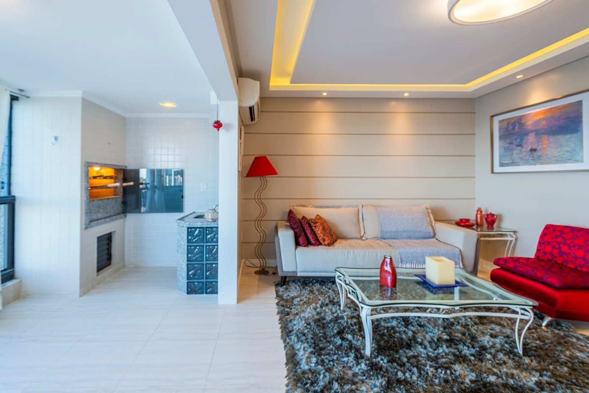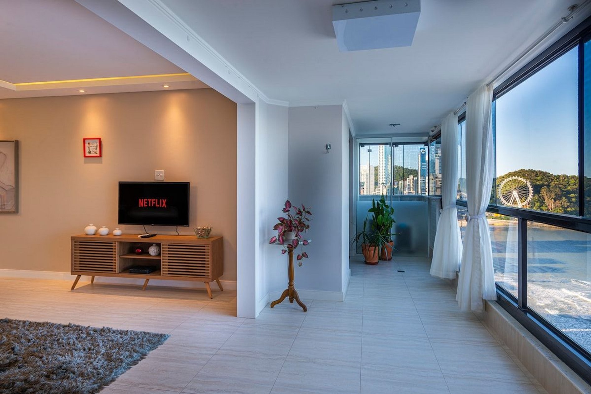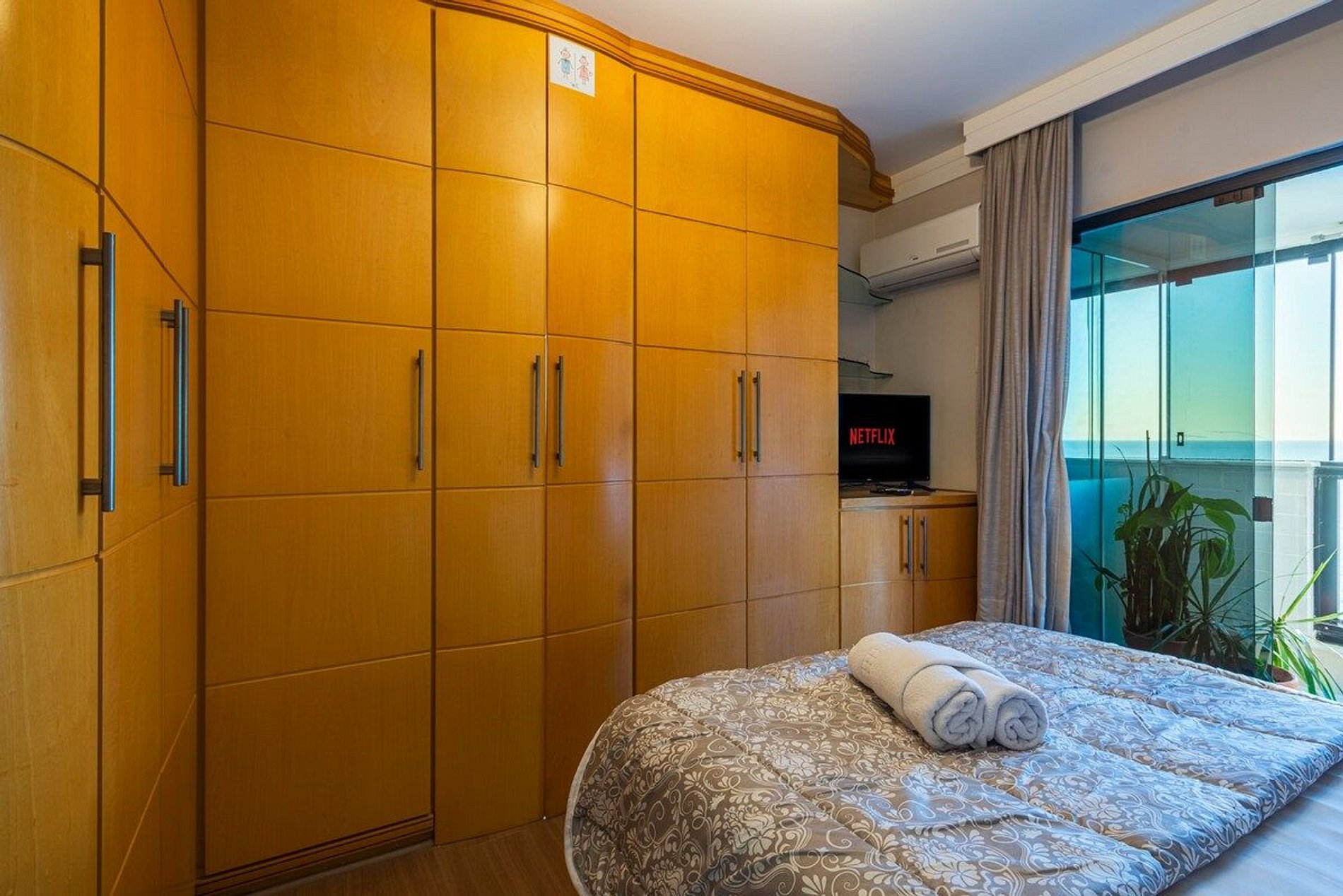 A acomodação conta com ar condicionado nos três quartos e também na sala de estar.