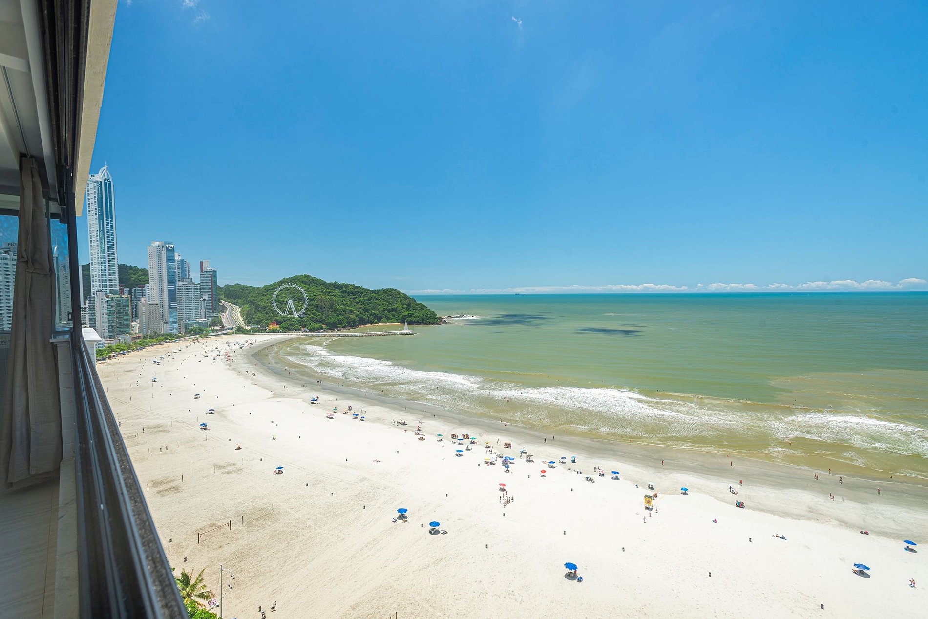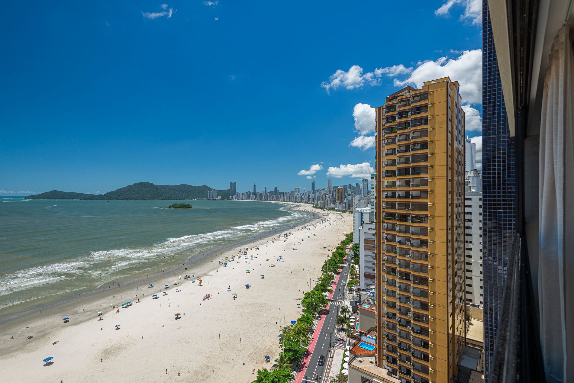 Beira mar! O condomínio fica em frente à praia central de Balneário Camboriú.