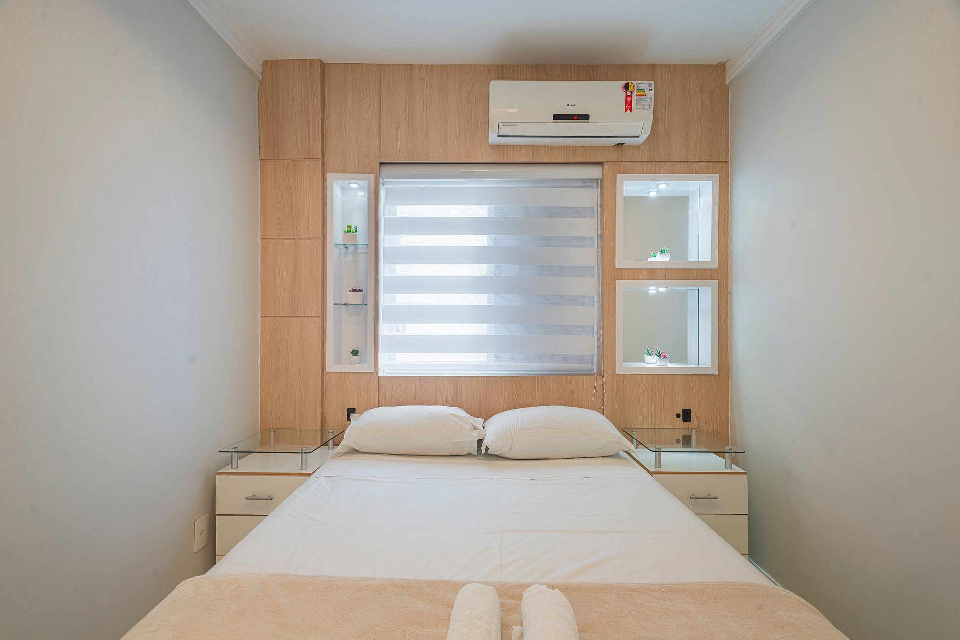 A acomodação conta com ar condicionado nos três quartos e também na sala de estar.