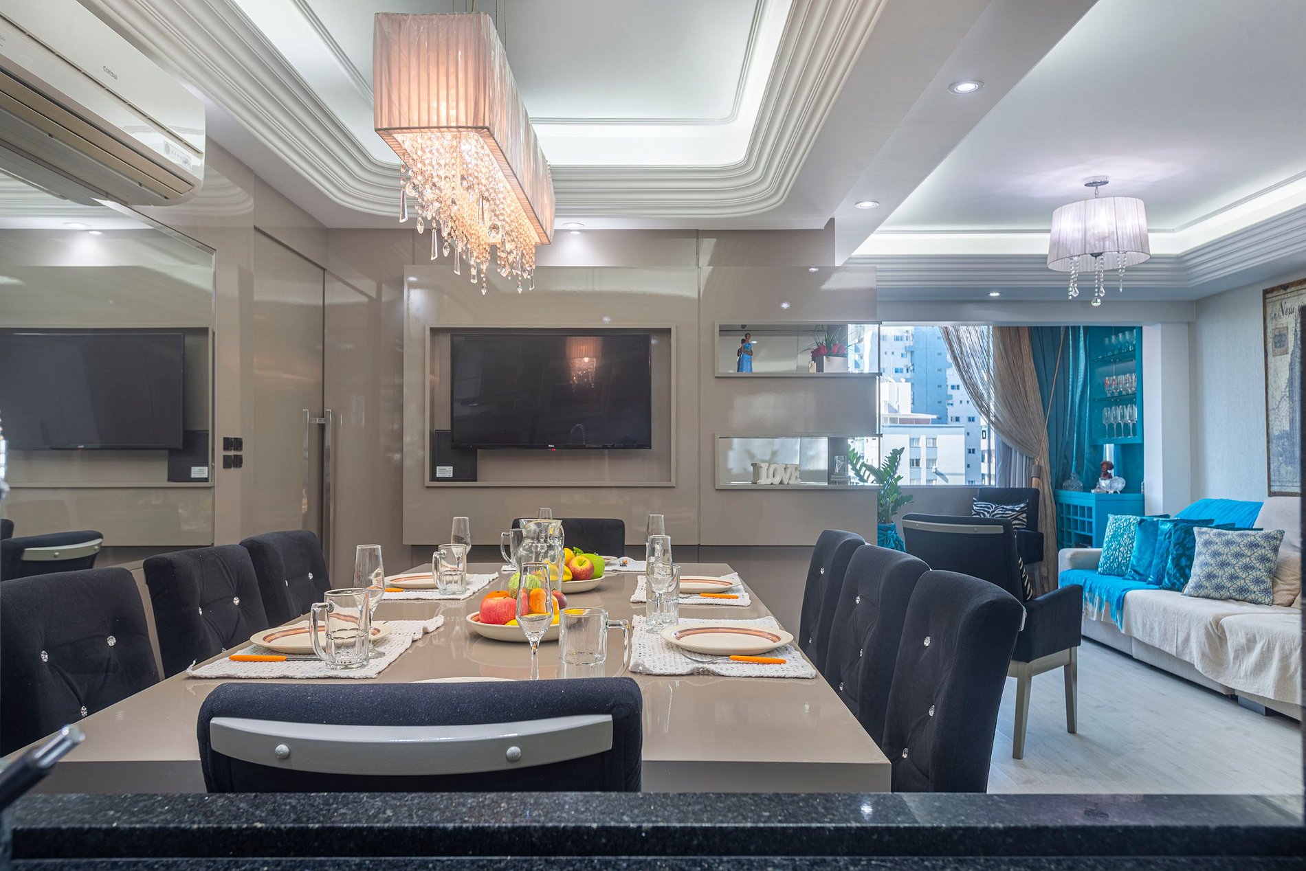 A acomodação conta com ar condicionado nos três quartos e também na sala de estar.